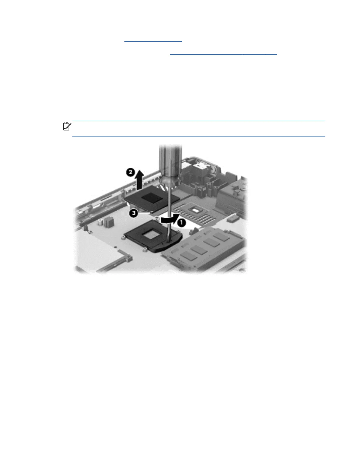 2. Use a flat-bladed screwdriver to turn the processor locking screw (1) one-half turn
