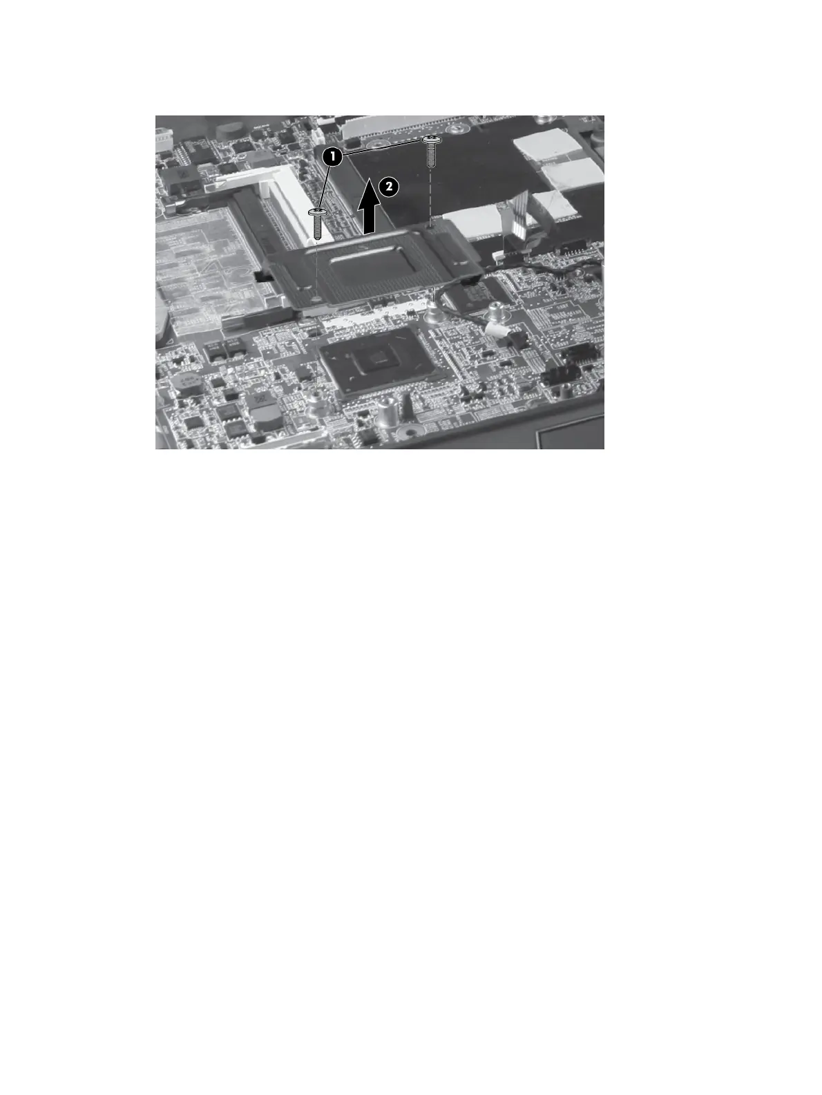 3. Remove the Northbridge chip heat sink from the system board (2).