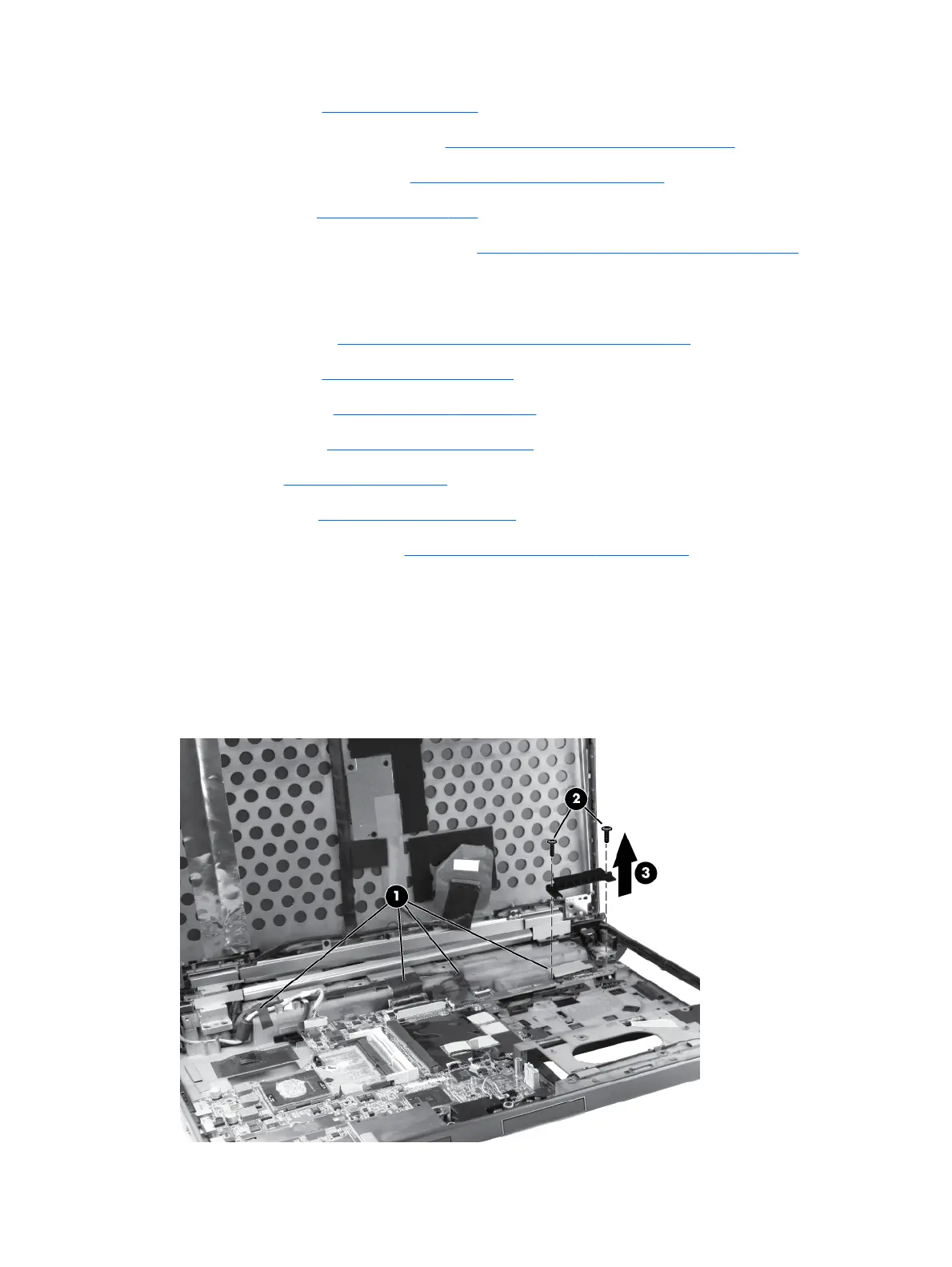 3. Remove the screws (2) that secure the plastic bracket to the system board, and then remove the