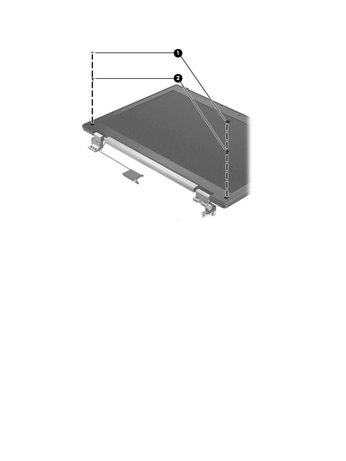 b. Remove the two Torx 8 screws (2) that secure the display bezel to the display enclosure.