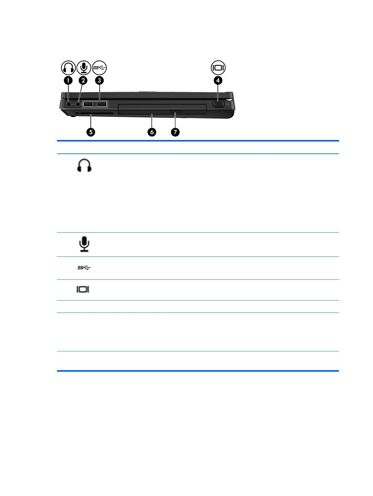Audio-in (microphone) jack Connects an optional computer headset microphone, stereo