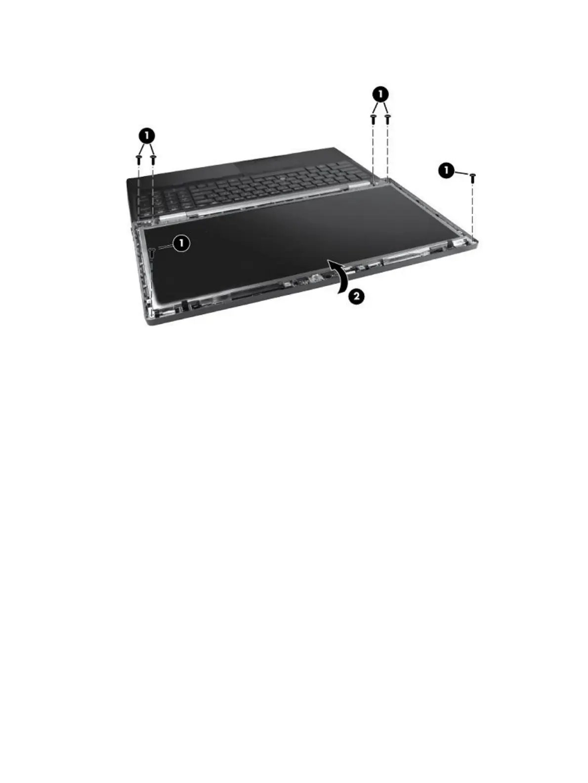 2. Remove the six Torx 8 screws (1) that secure the display panel to the display enclosure (2).