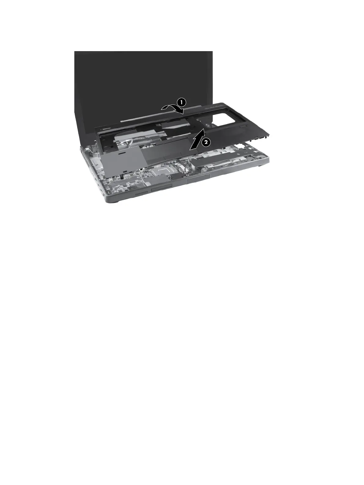 4. Pull up the back edge (1) of the top cover, and then lift the cover (2) away at an angle.