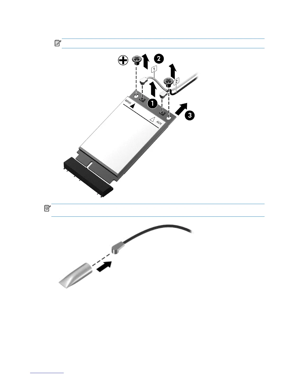 NOTE: If the WWAN antennas are not connected to the terminals on the WWAN module, the