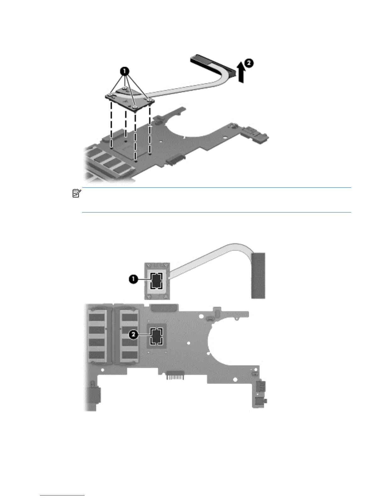 the system board components each time the heat sink is removed. Replacement thermal material is