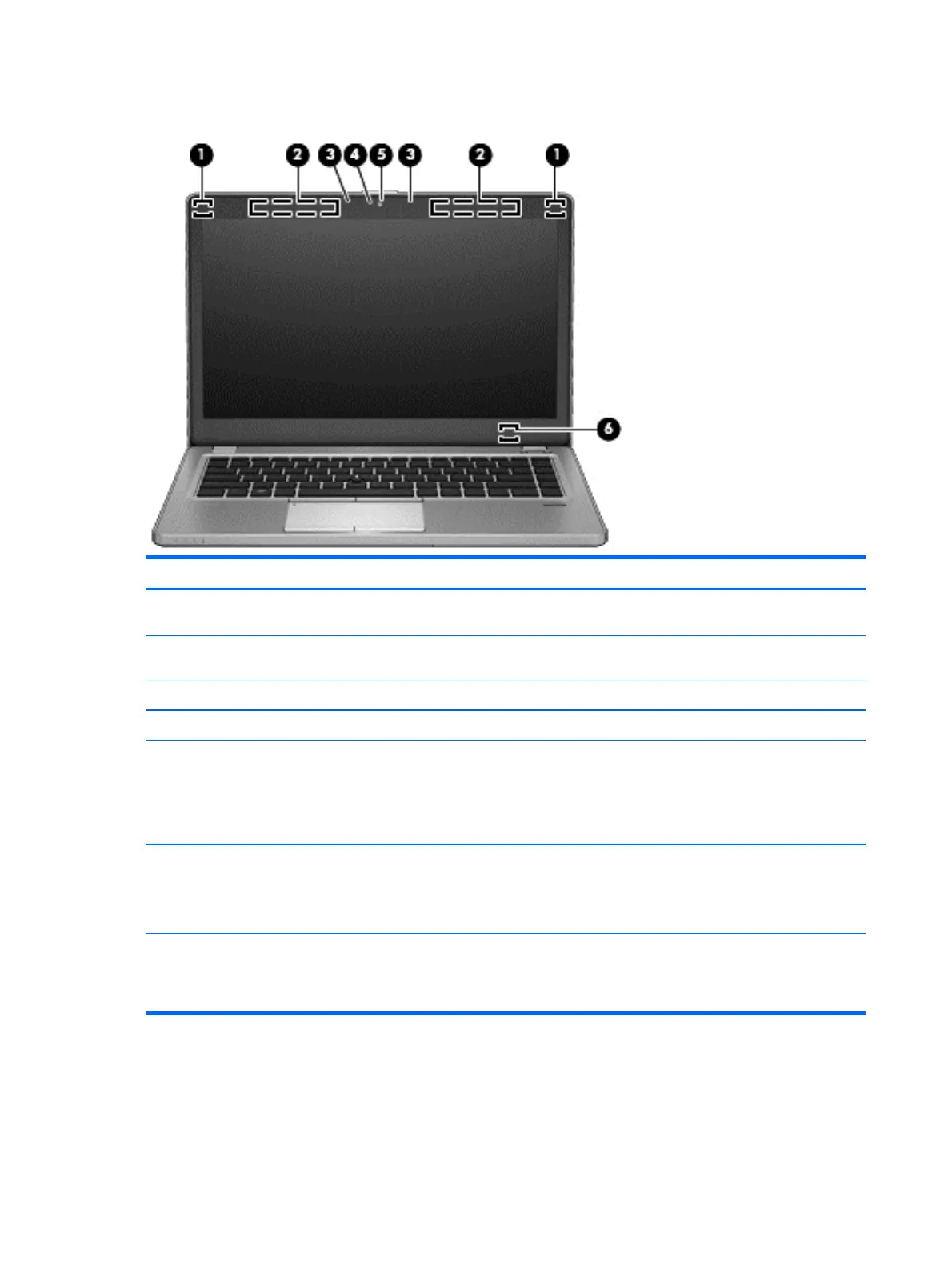 (1) WLAN antennas (2)* (select models only) Send and receive wireless signals to communicate with wireless