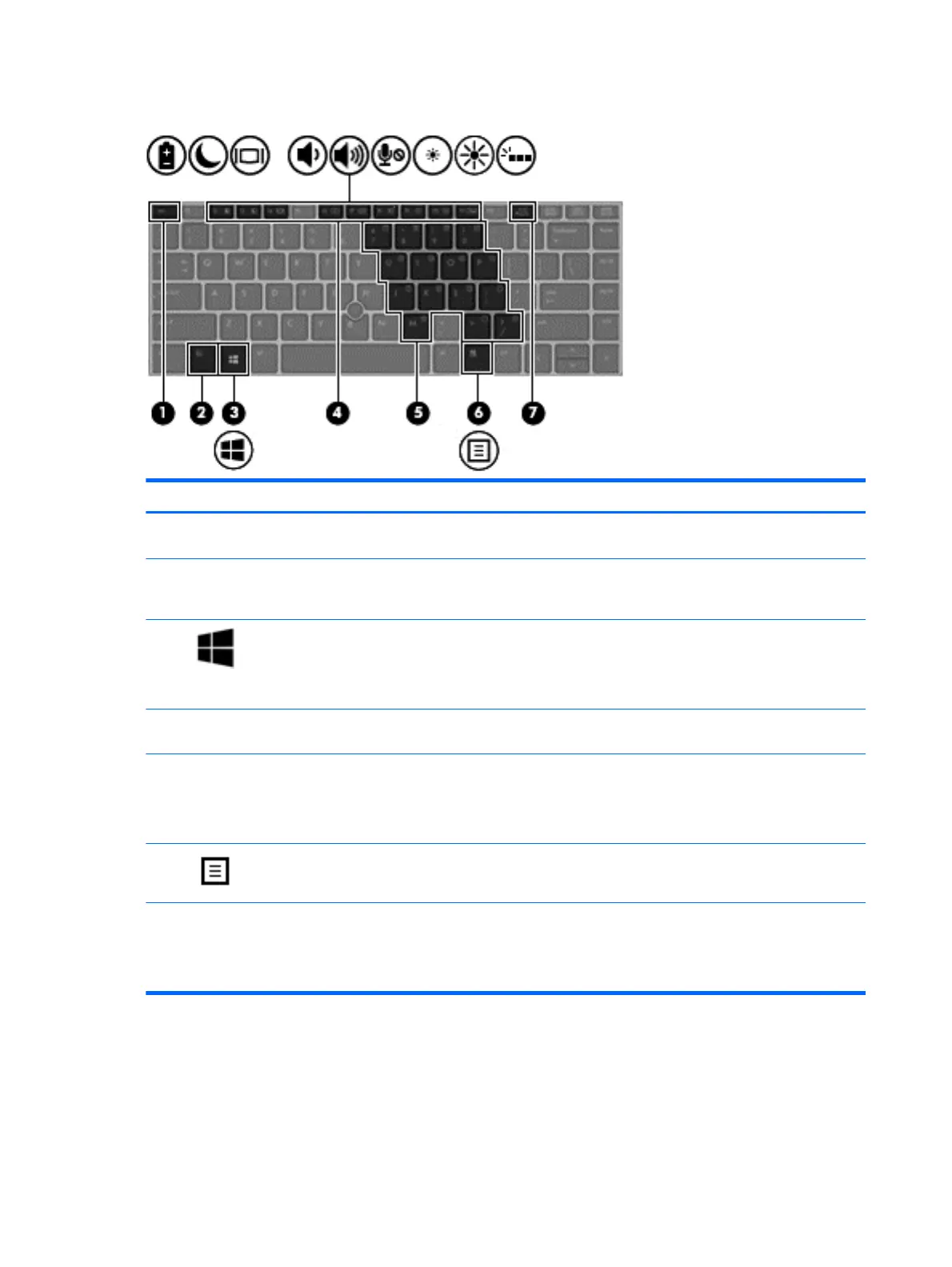 (7) num lk key Turns the embedded numeric keypad on and off when