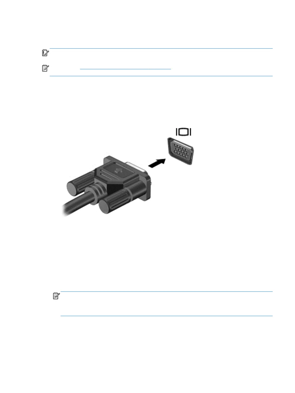 1. Connect the VGA cable from the monitor or projector to the VGA port on the computer as