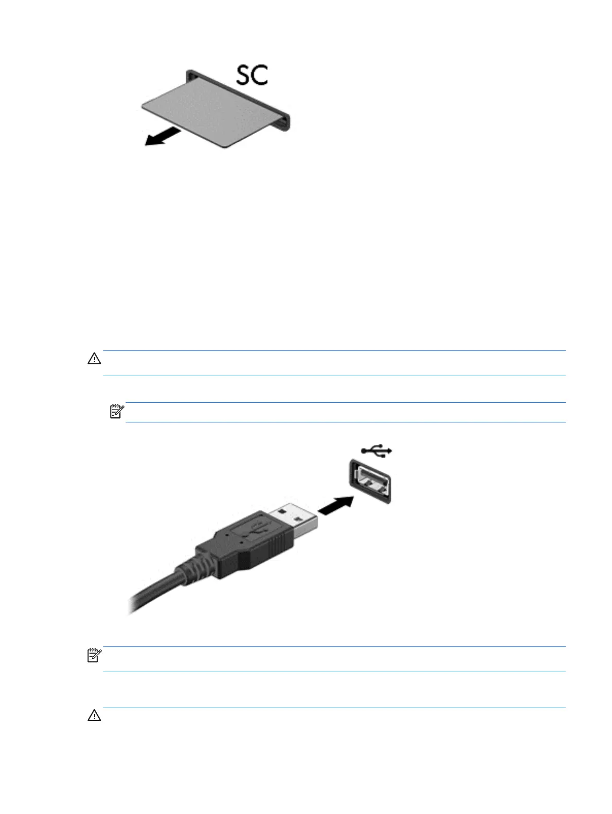 CAUTION: To reduce the risk of damage to a USB connector, use minimal force to connect the