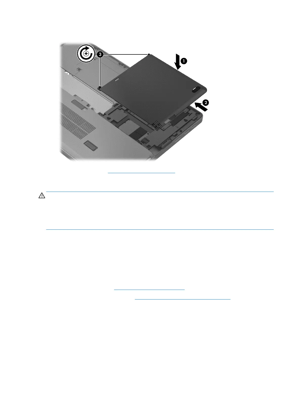 2. Slide the hard drive cover (2) into place, and then tighten the 2 screws (3).