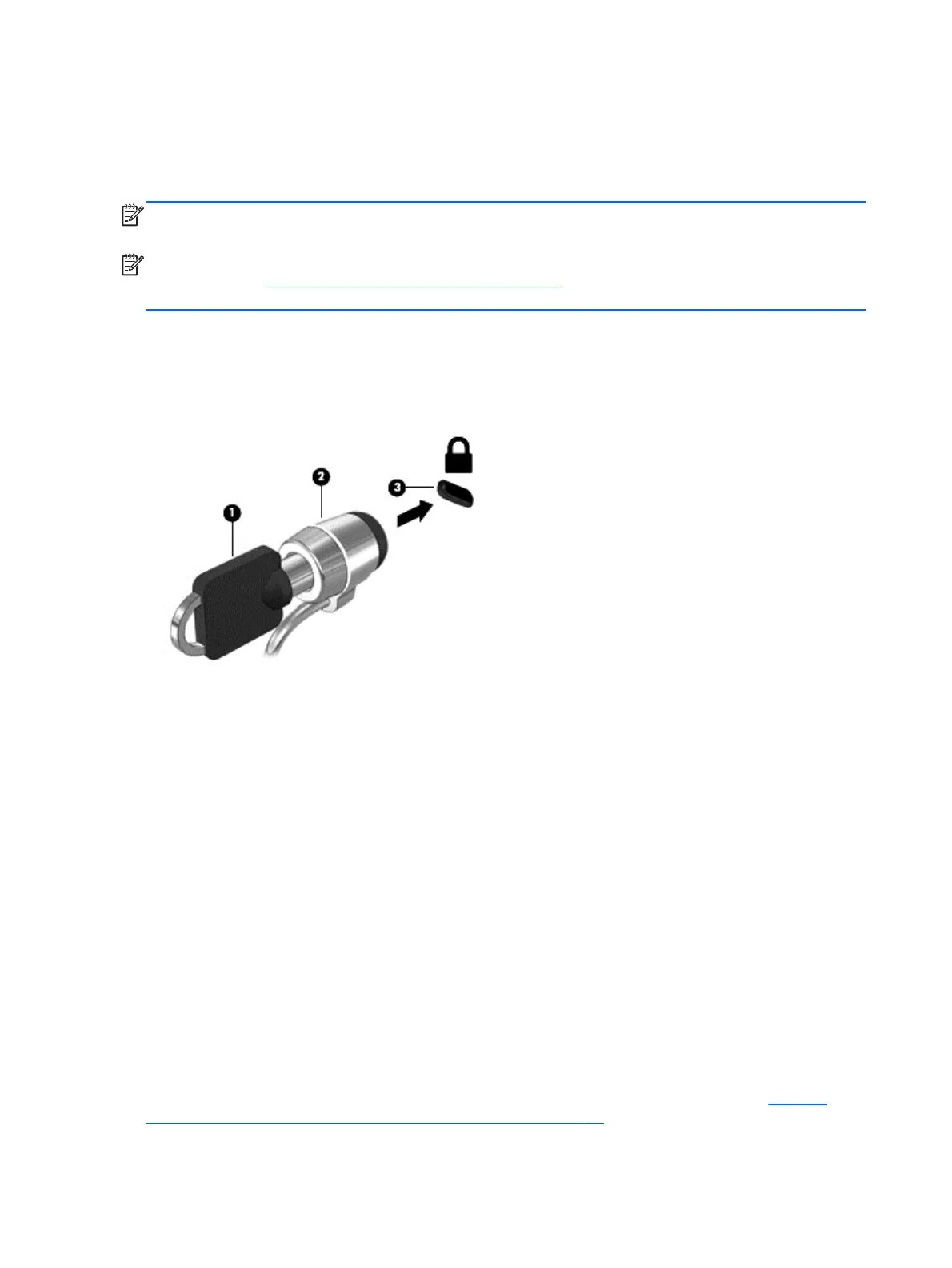 3. Insert the cable lock into the security cable slot on the computer (3), and then lock the cable lock