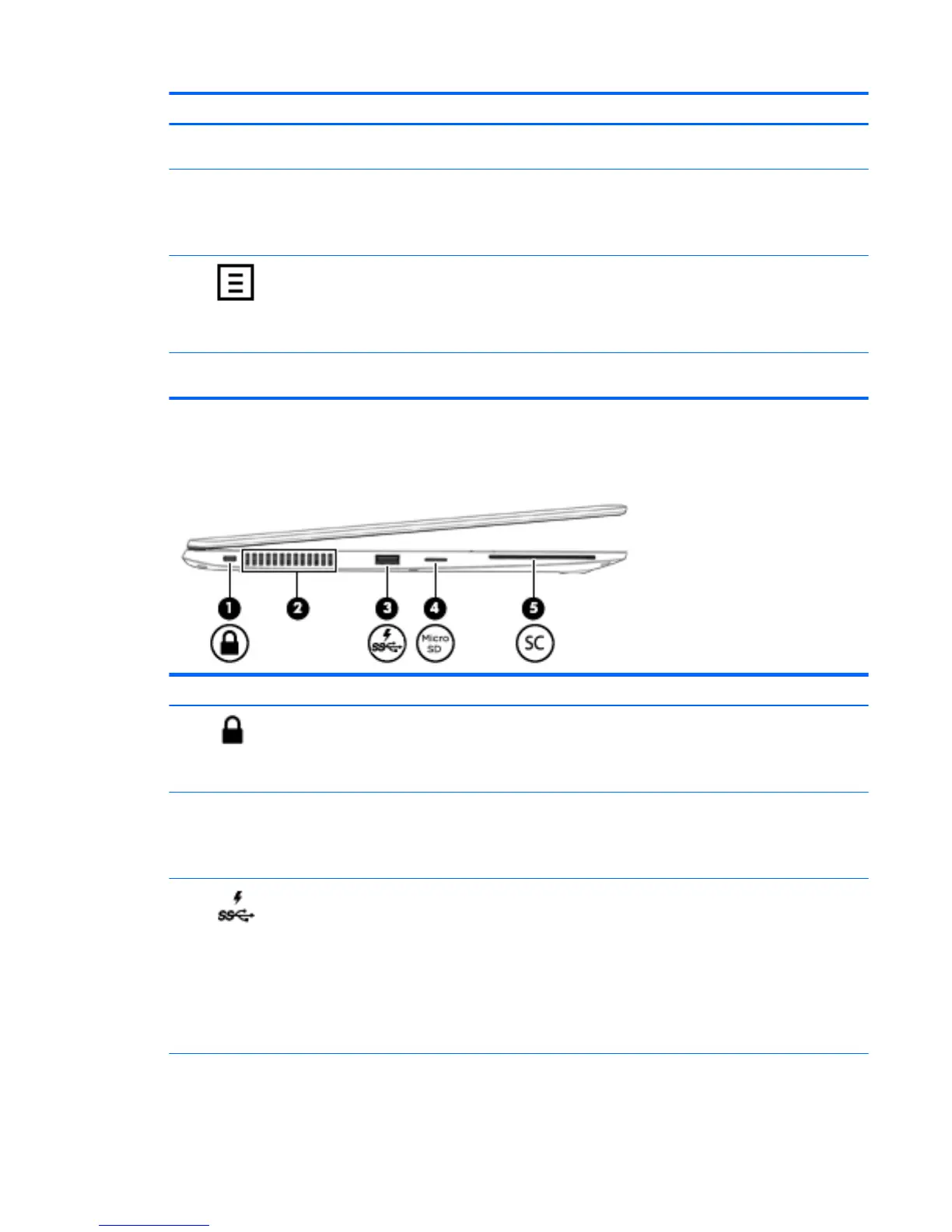 (3) USB 3.0 charging port Connects an optional USB device, such as a keyboard, mouse,