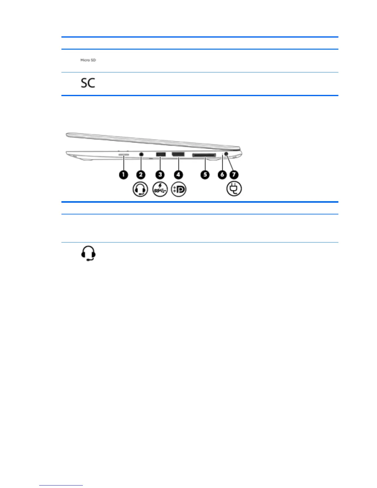 (4) Micro SD memory card reader Supports micro Secure Digital (SD) memory cards.