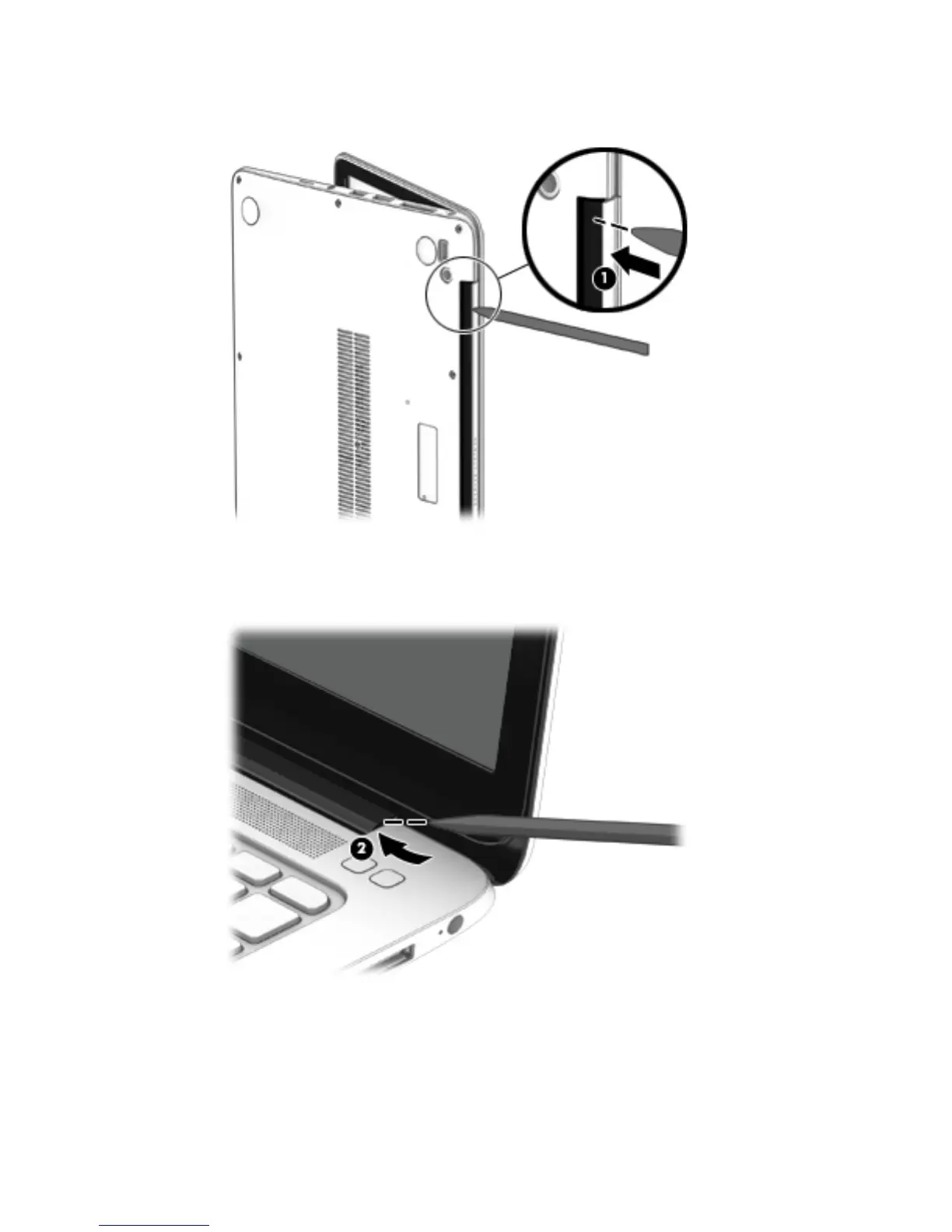 b. From the rear of the computer, press through the slightly open computer to disengage the bottom