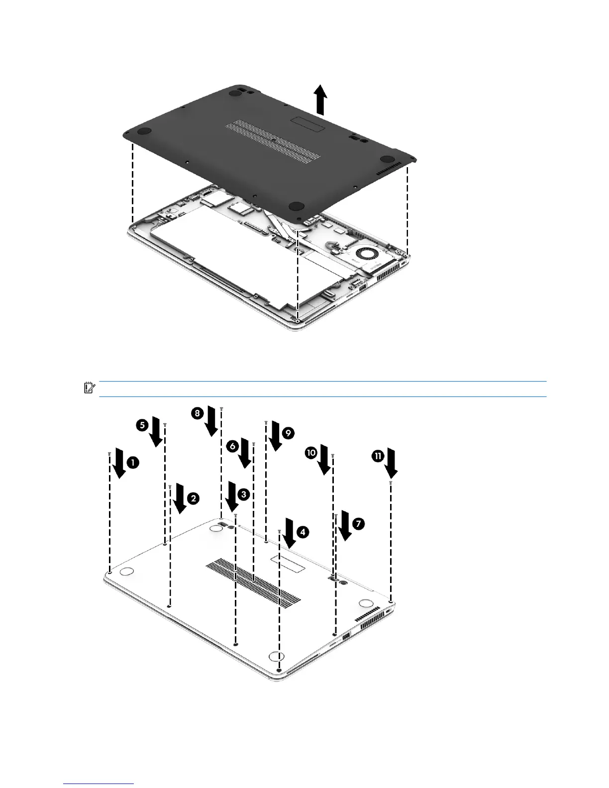 When reinstalling the bottom cover, install the screws in the sequence as illustrated in the following image.