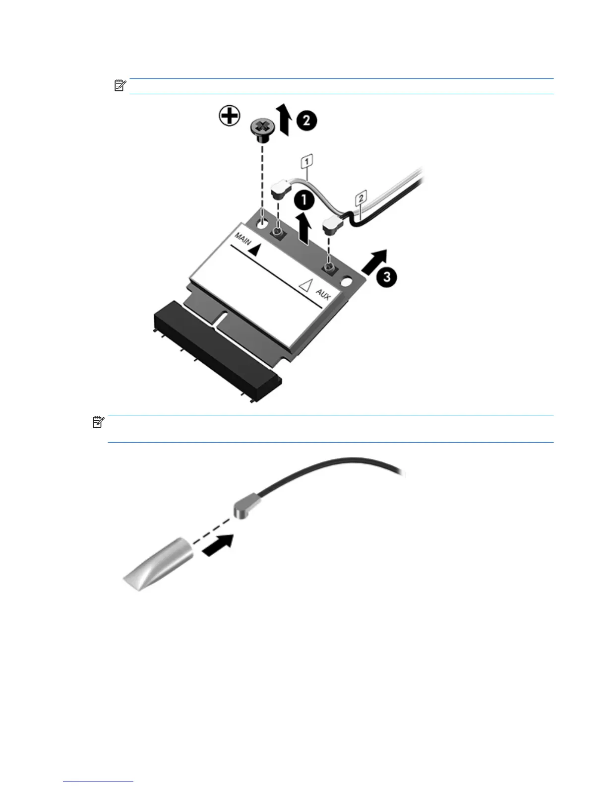 NOTE: If the WLAN antennas are not connected to the terminals on the WLAN module, the protective