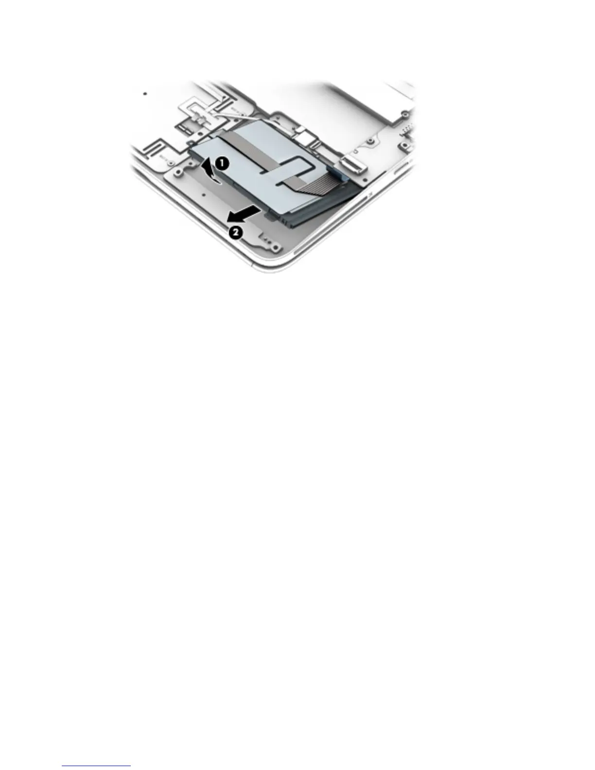 3. Rotate the bottom up the reader upward at an angle (1), and then remove it from the computer (2).