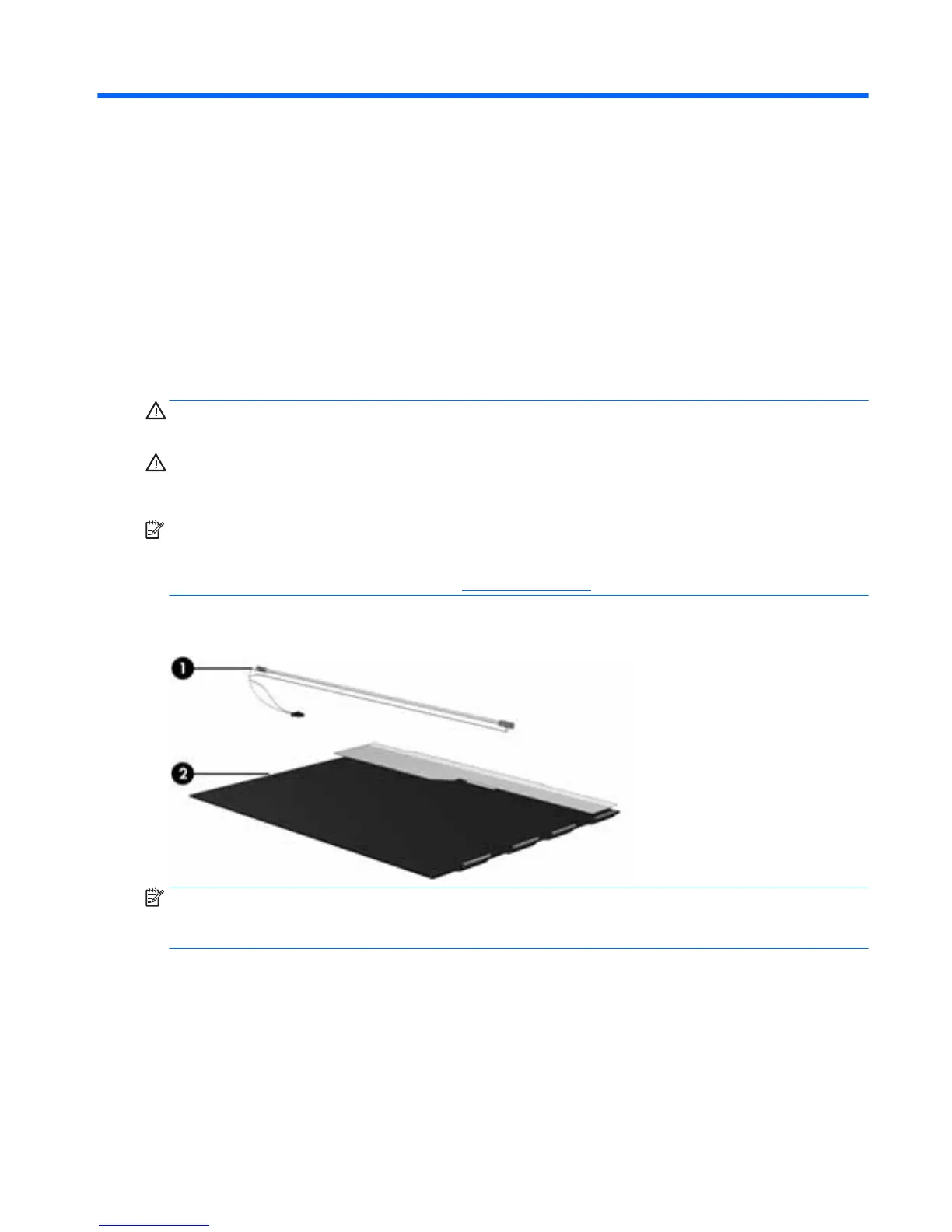 WARNING! The backlight contains mercury. Exercise caution when removing and handling the backlight to