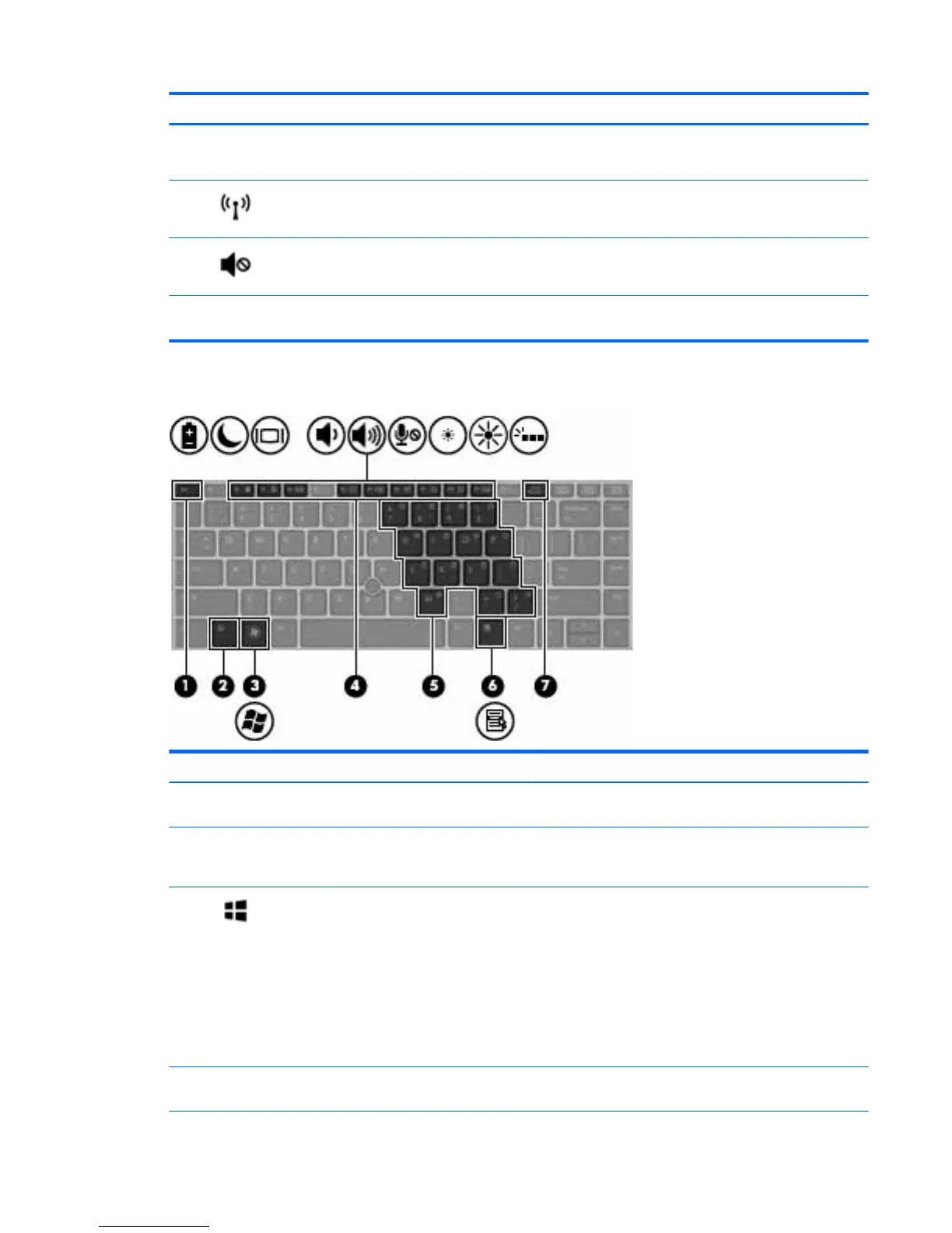 (3) Windows key Windows 7: Displays the Windows Start menu.