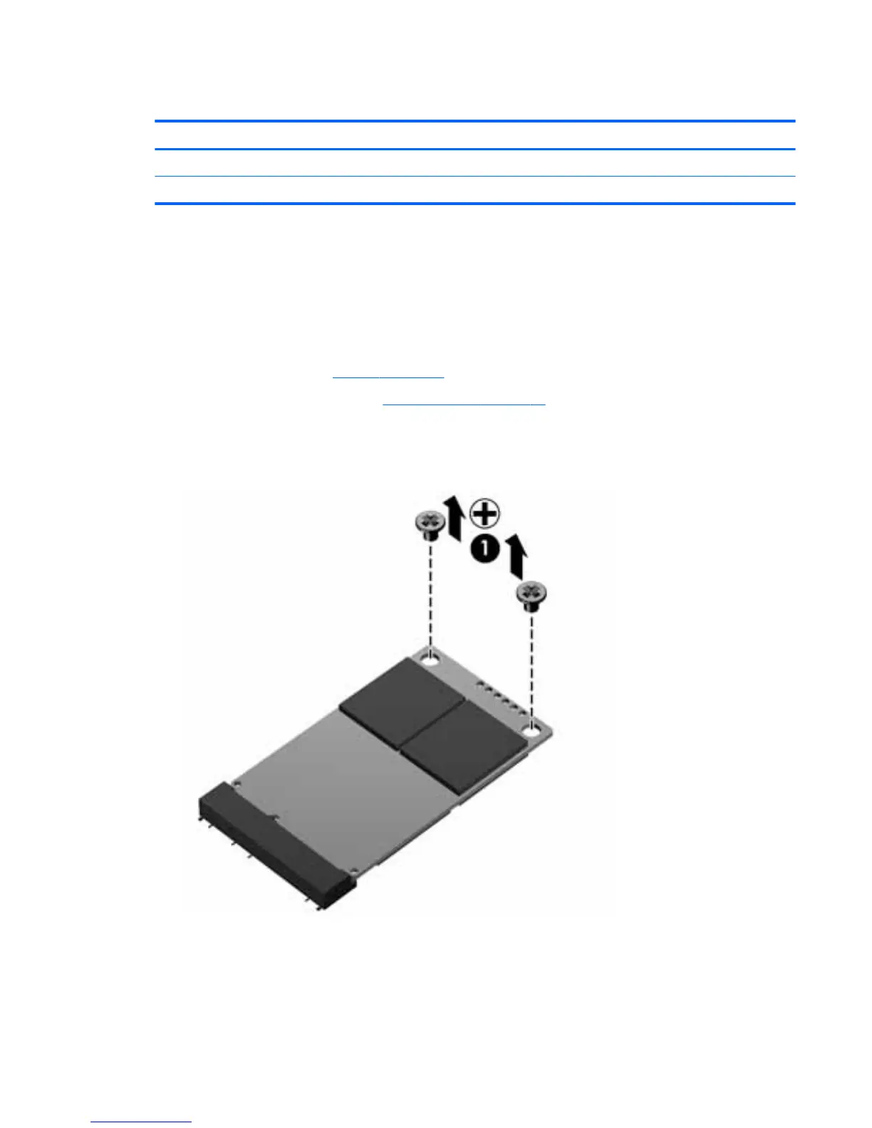 1. Remove the two Phillips PM2.0×3.0 screws (1) that secure the drive to the system board. (The drive tilts