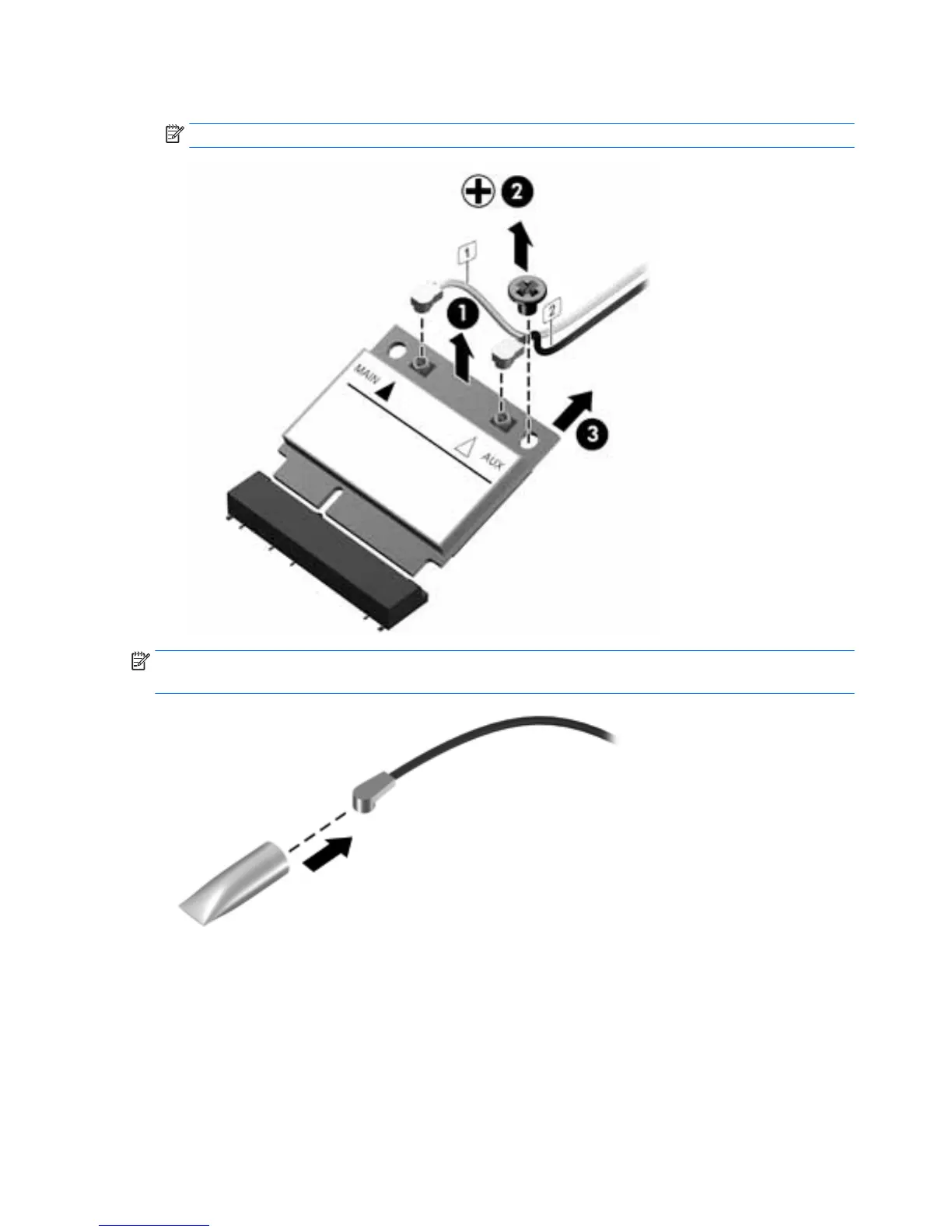 NOTE: If the WLAN antennas are not connected to the terminals on the WLAN module, the protective
