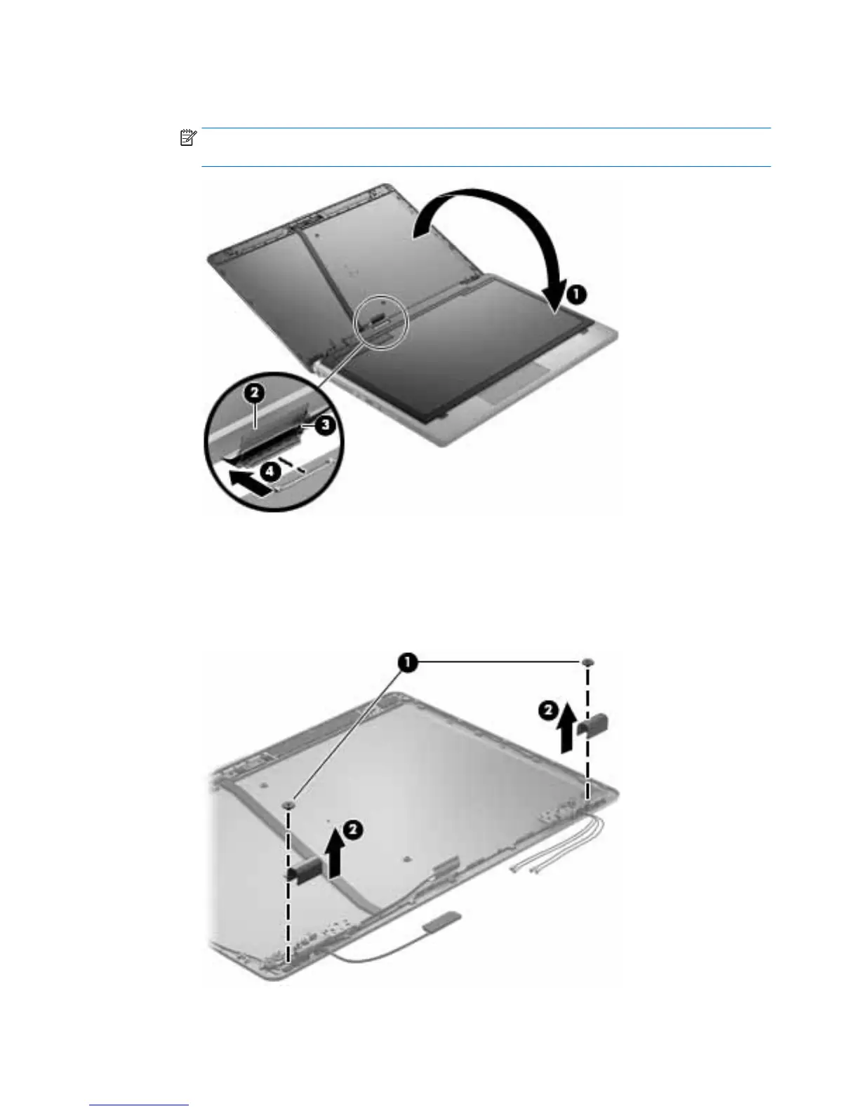 Display hinge covers and hinges are available in the Display Hinge Kit, spare part number 702857-001.