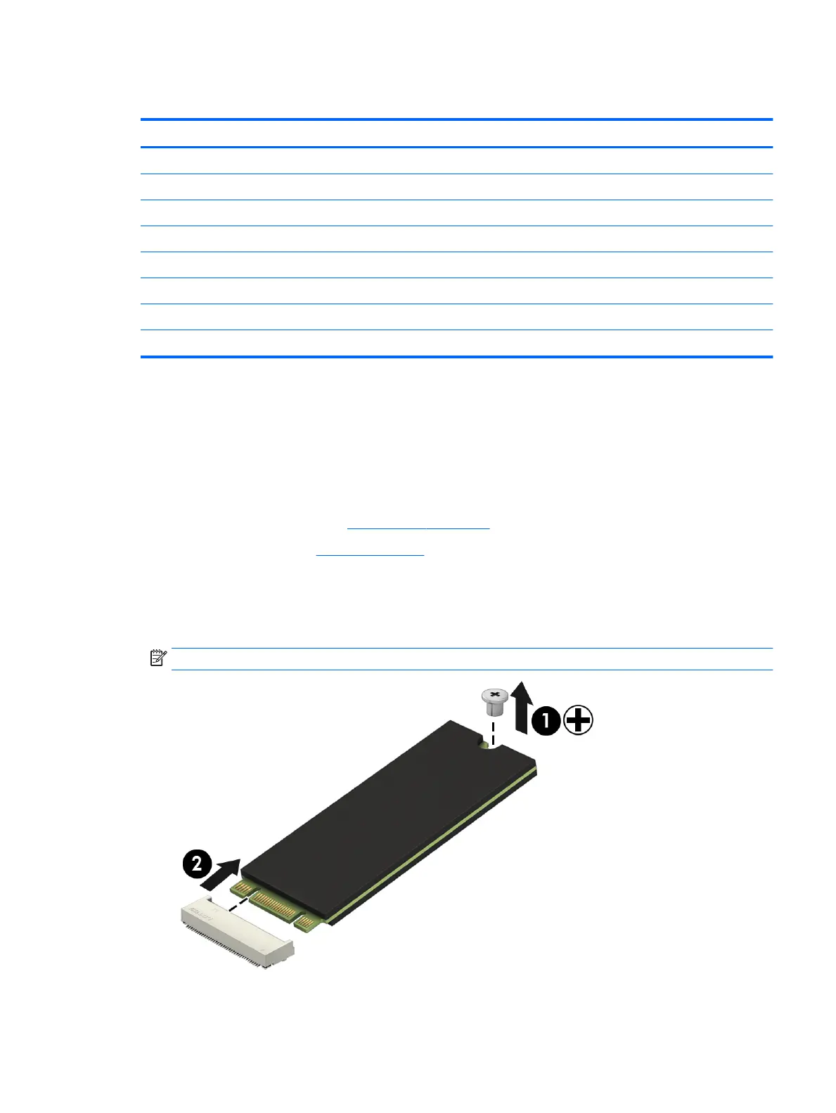 1. Remove the Phillips PM2.0×1.8 screw (1) that secures the drive to the system board.