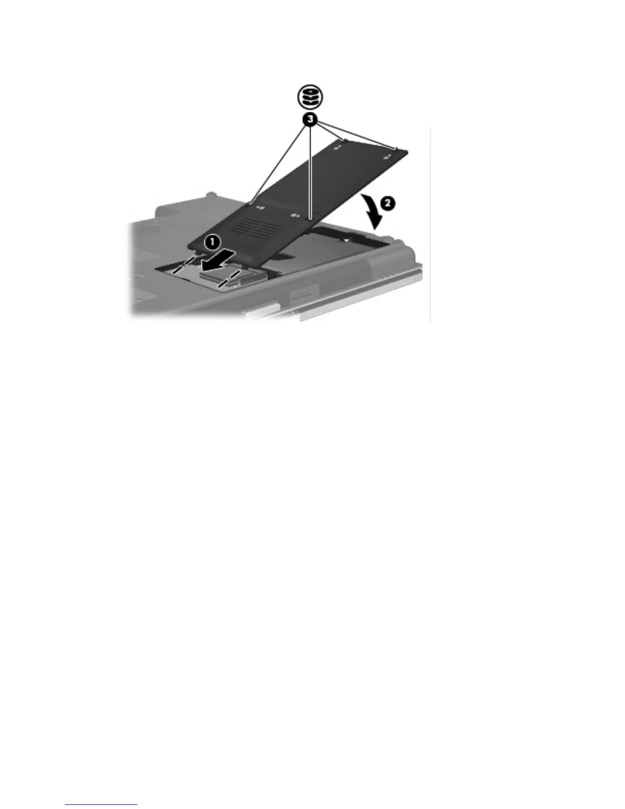 6. Tighten the hard drive cover screws (3).