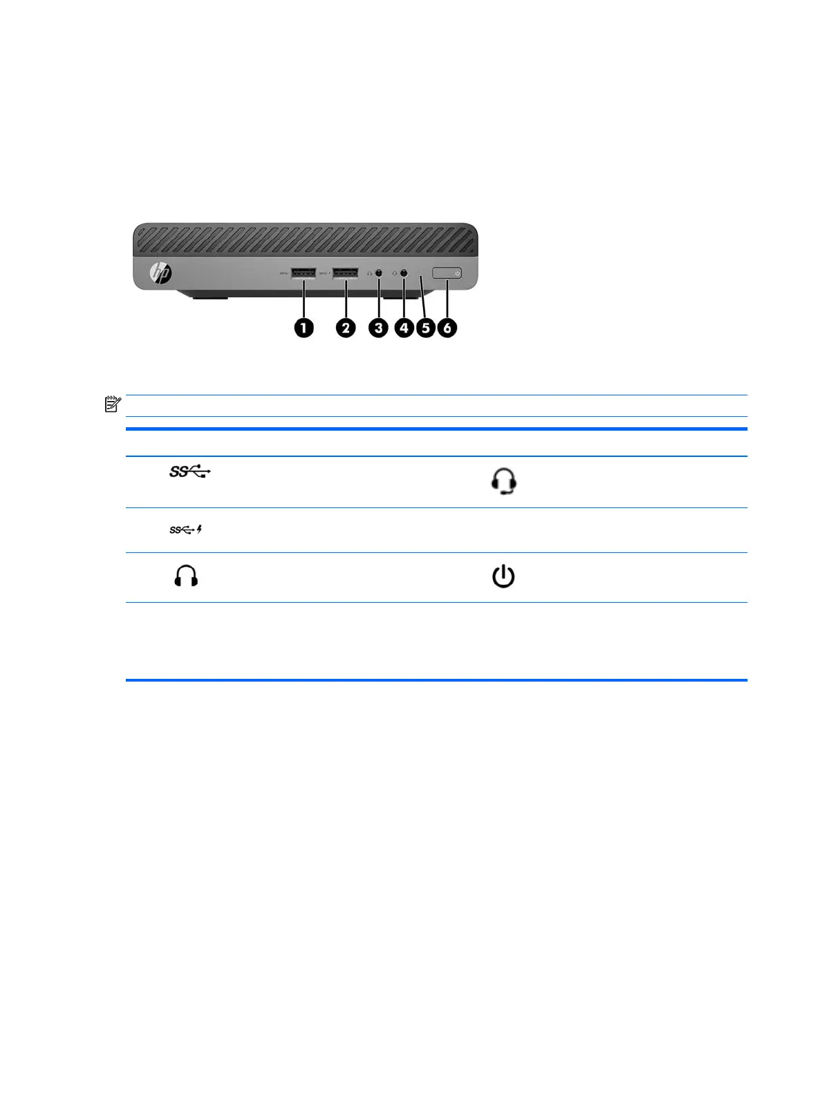 2 USB 3.x port with HP Sleep and Charge* 5 Drive light