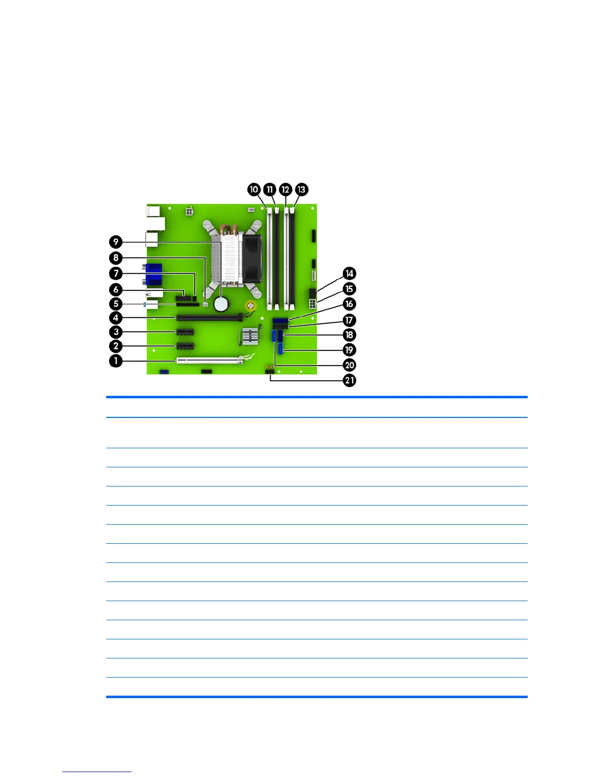 Refer to the following illustration and table to identify the system board connectors for your model.