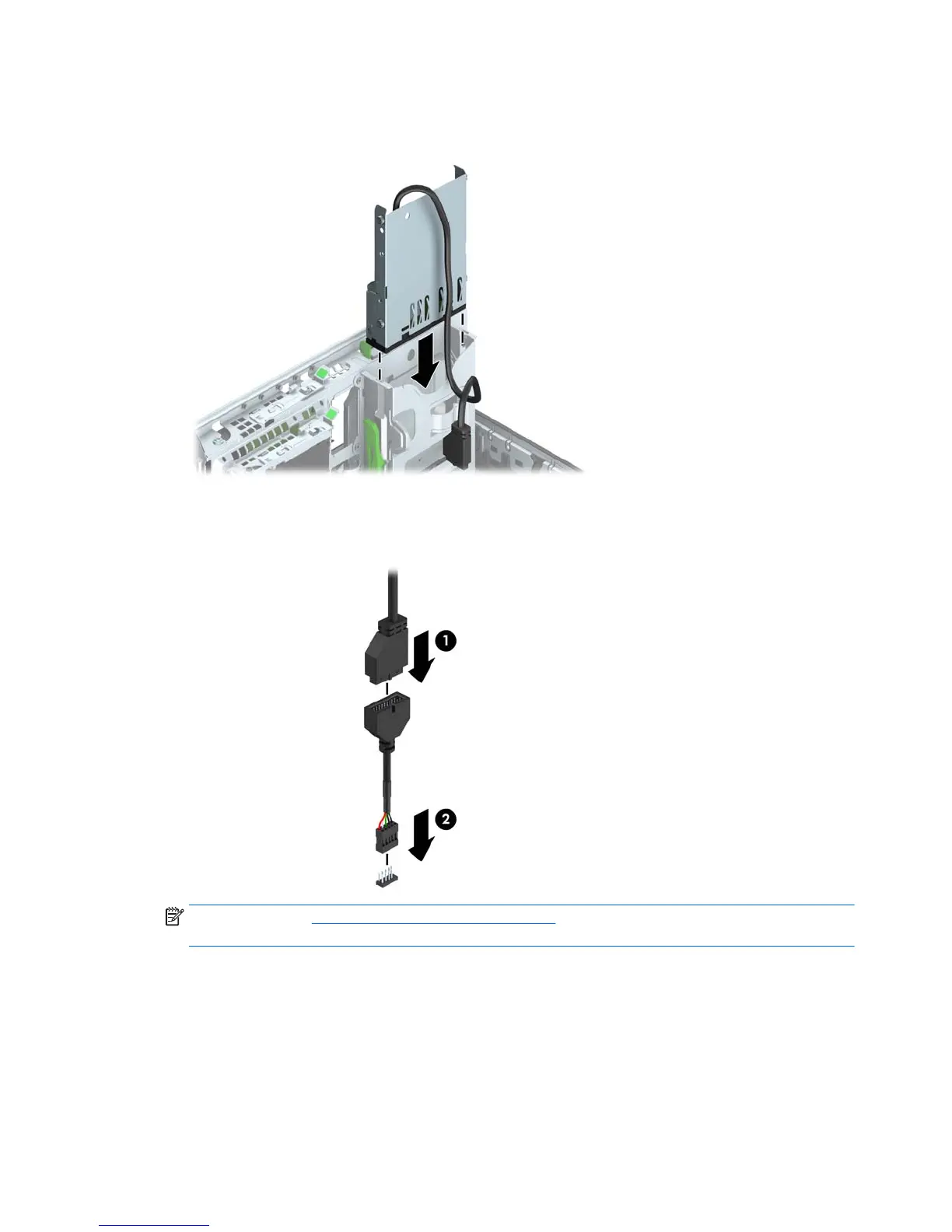 7. If installing a USB 3.0 media card reader, you must use the USB 3.0 to USB 2.0 adapter (1) and