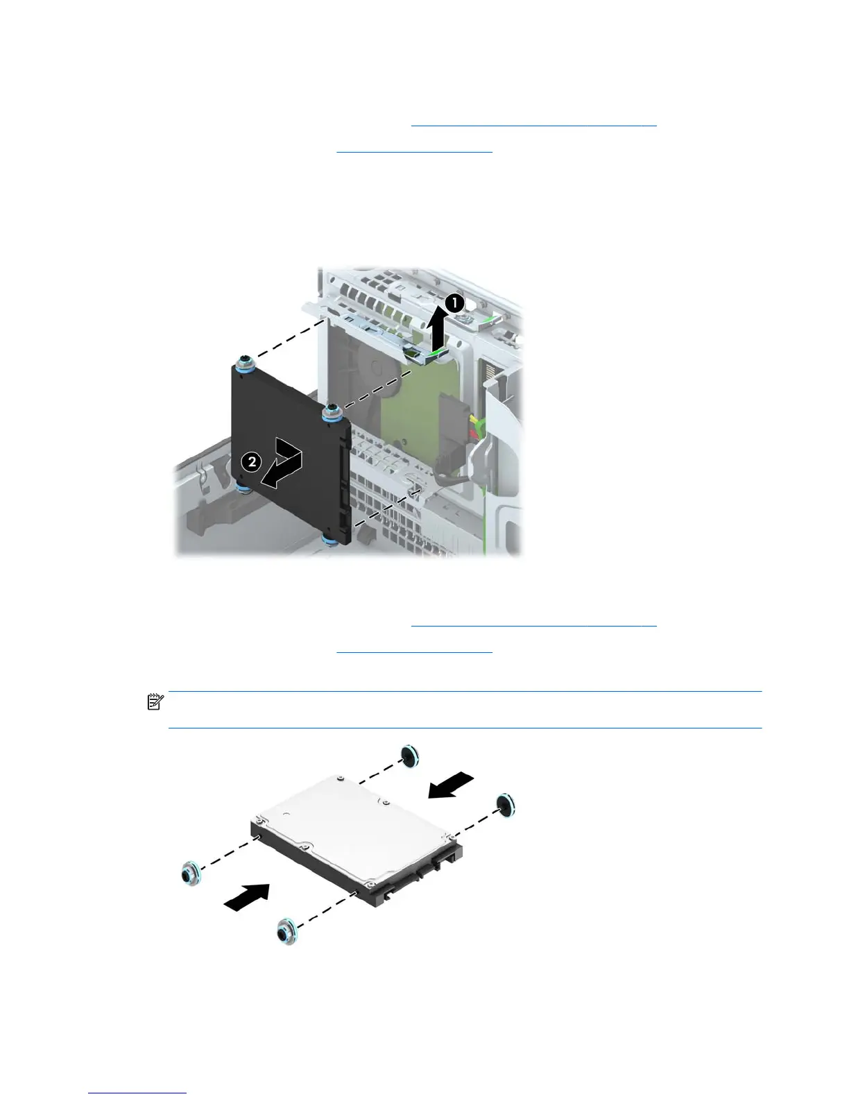 NOTE: When replacing a drive, transfer the four M3 isolation mounting guide screws from the