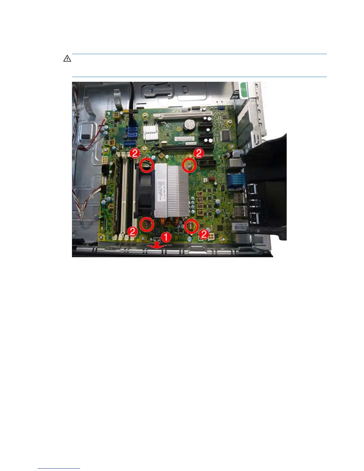 loosen the four captive screws (2) that secure the heat sink to the system board tray.