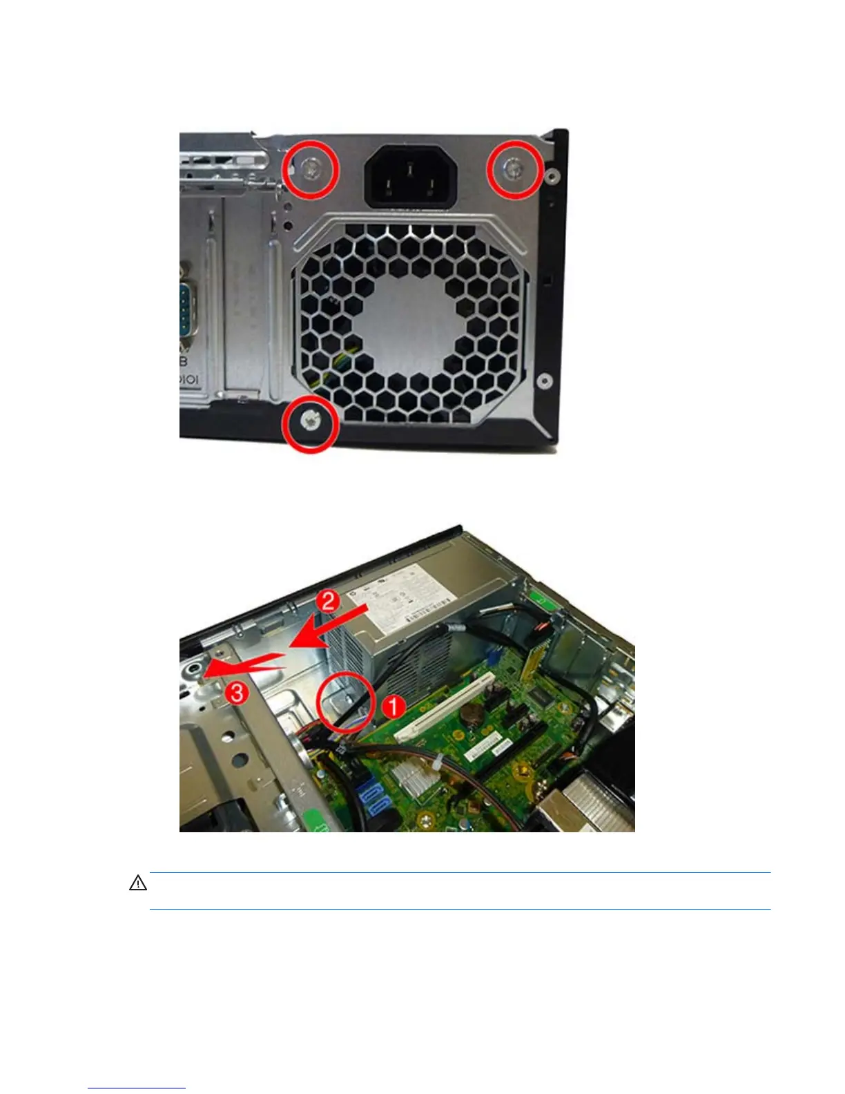 5. From the outside, rear of the chassis, remove the three Torx T15 that secure the power supply