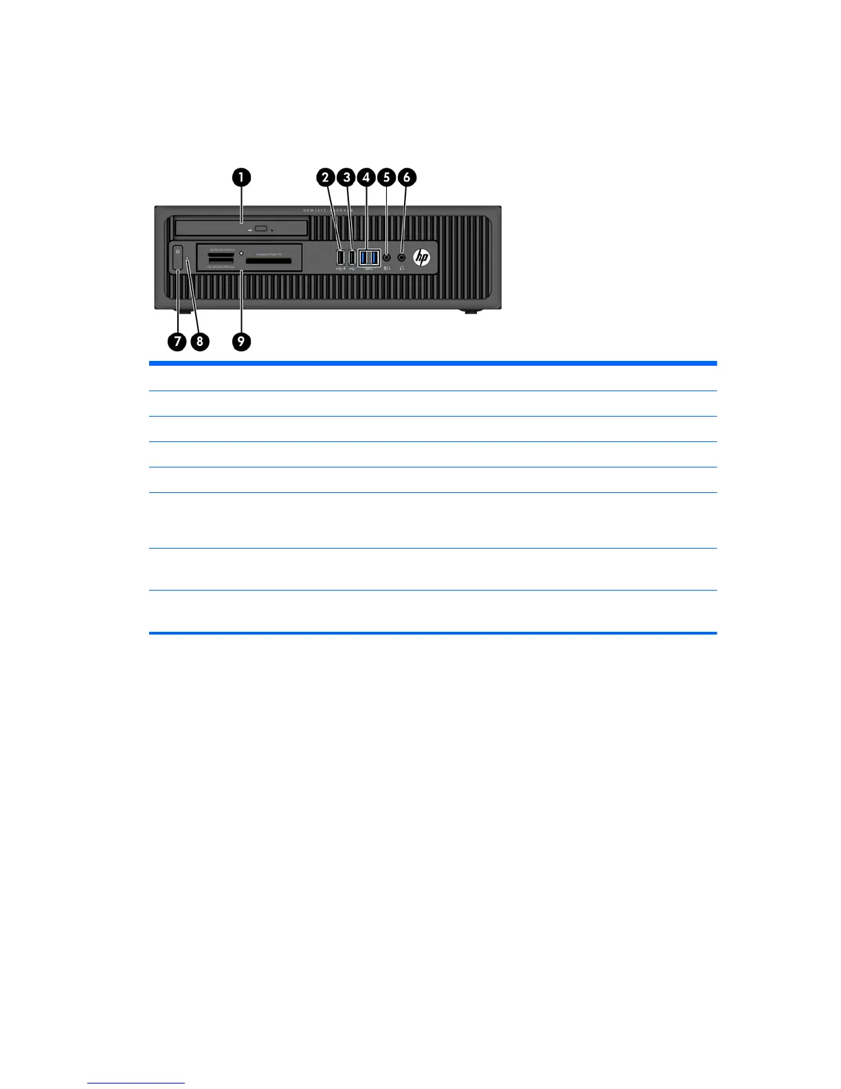 4 USB 3.0 Ports (blue) 9 3.5-inch Media Card Reader (optional)