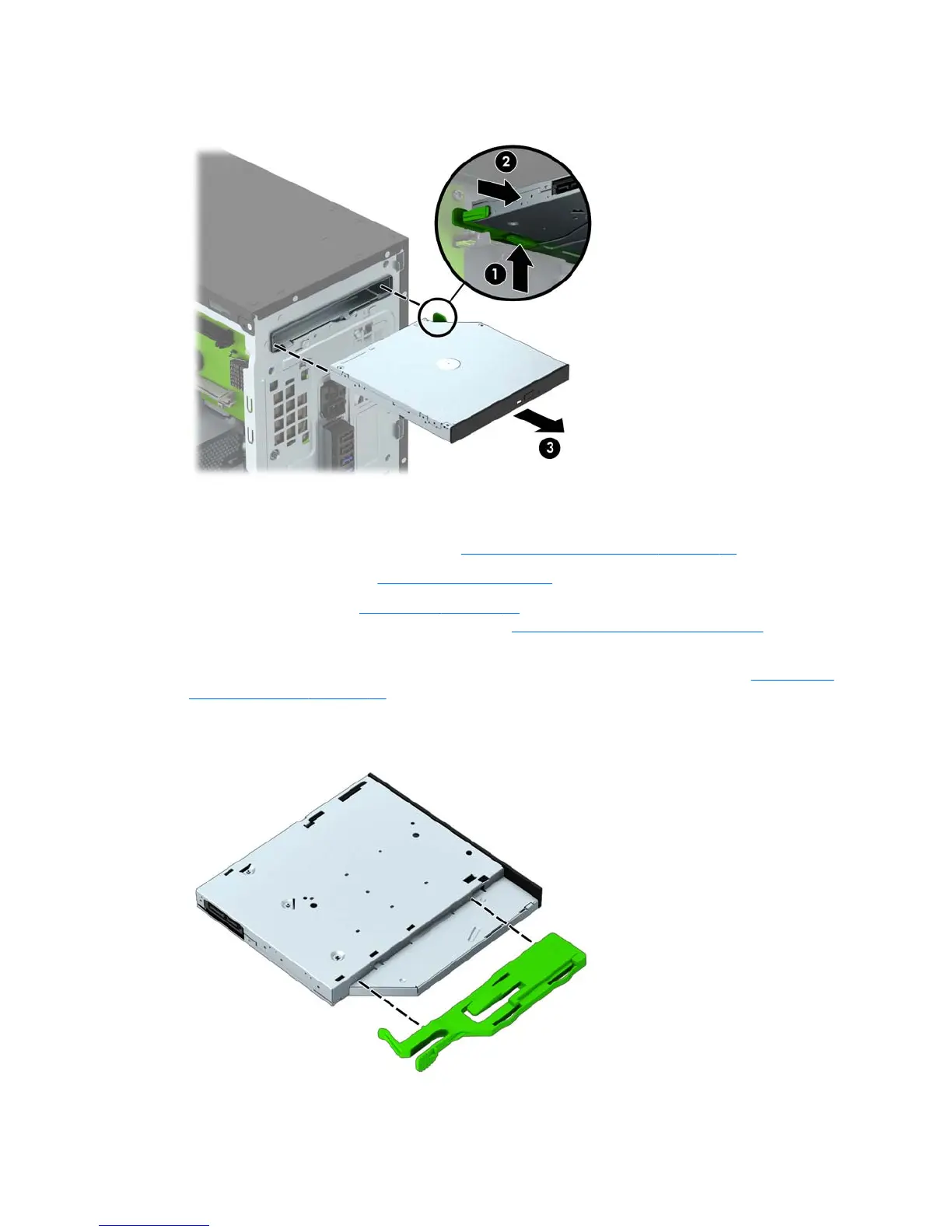 4. Follow the instructions for removing the optical drive if one was installed. Refer to