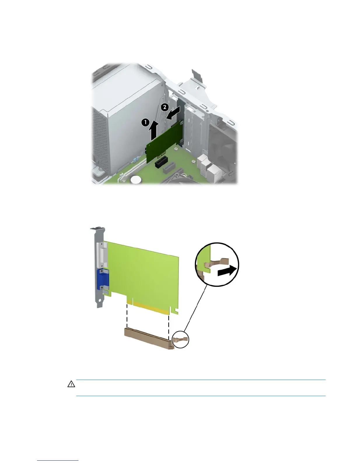 forth until the connectors pull free from the socket. Lift the card straight up (1) then away from the
