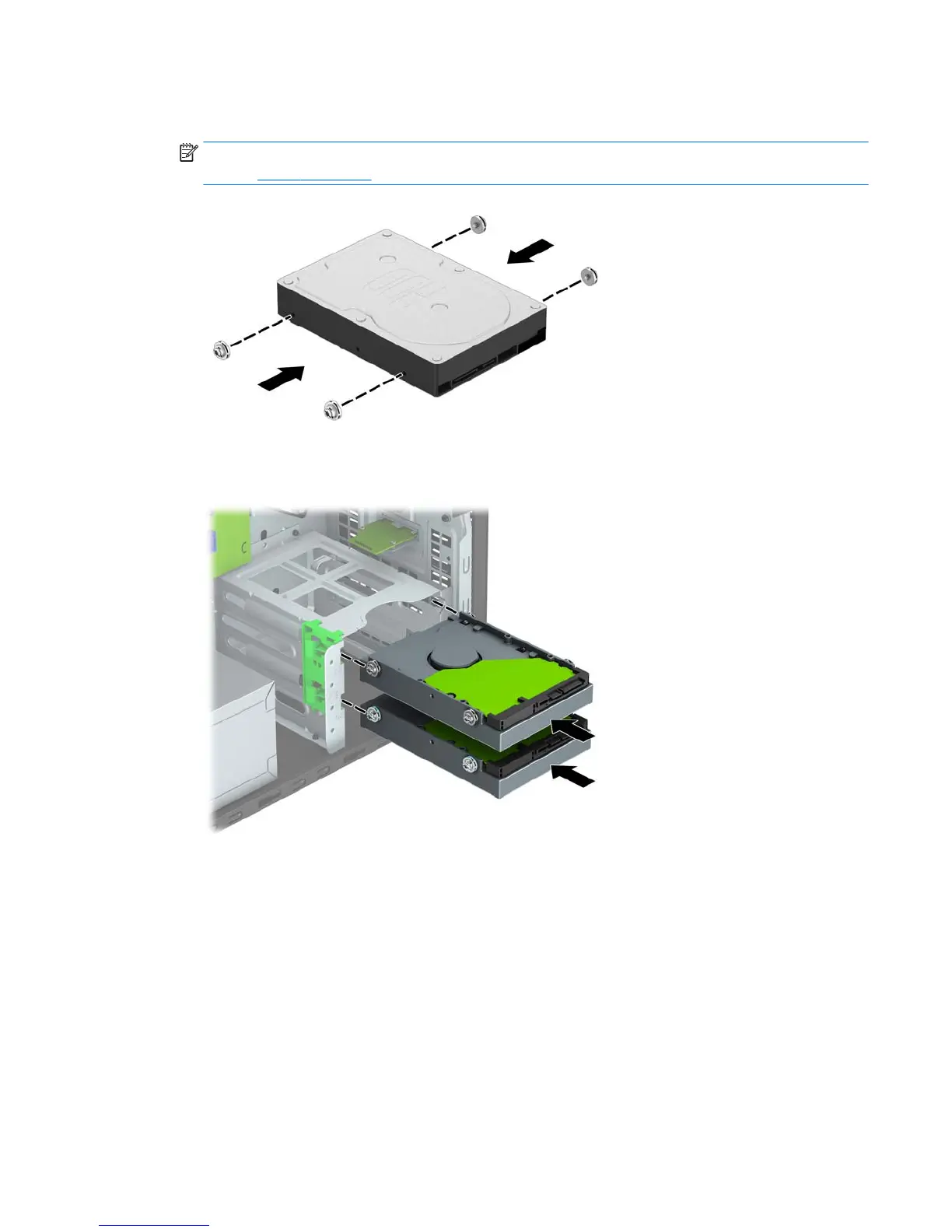 4. Install four mounting screws into the sides of the 3.5-inch drive or the 2.5-inch drive adapter bracket