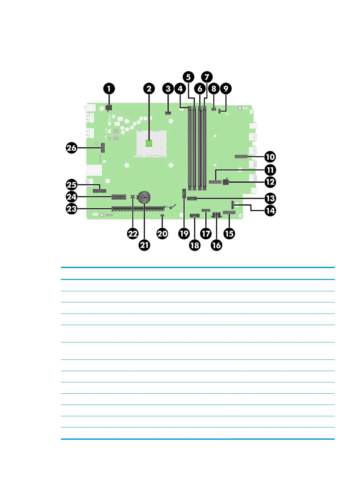 (1) PWRCPU 4-pin processor power (14) WIRELESS WLAN module