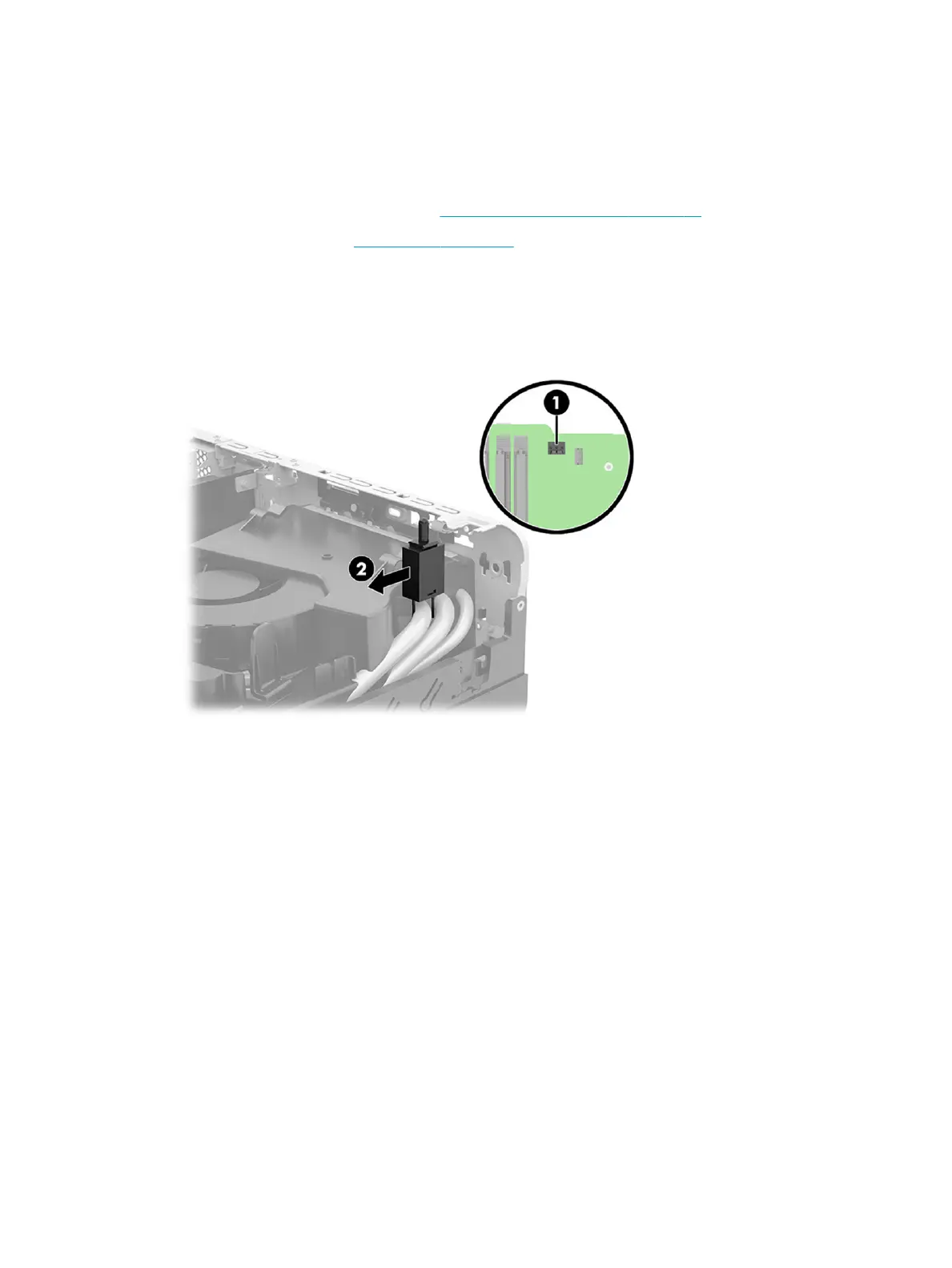 1. Disconnect the hood sensor cable from the system board connector labeled HSENSE (1).