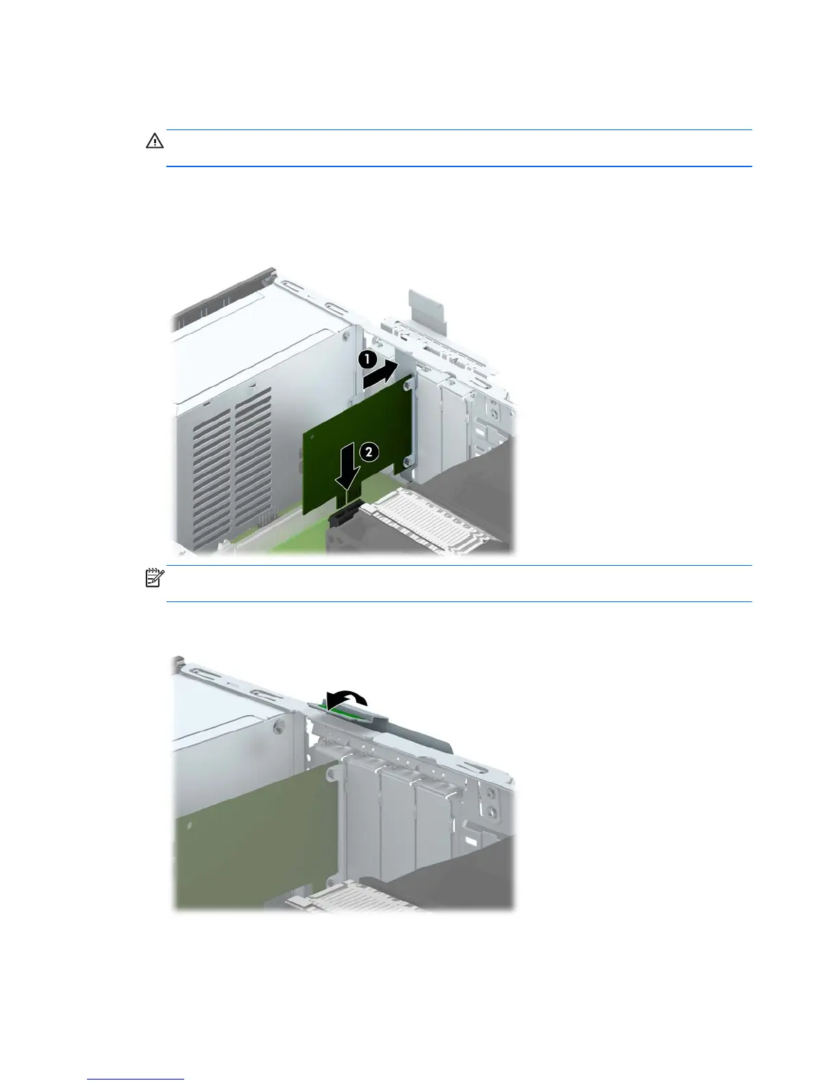NOTE: When installing an expansion card, press firmly on the card so that the whole connector