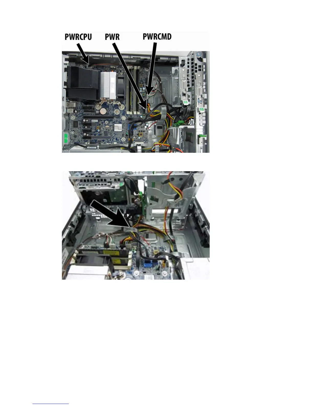 5. Release the power supply cables from the cable retaining clip under the drive cage.