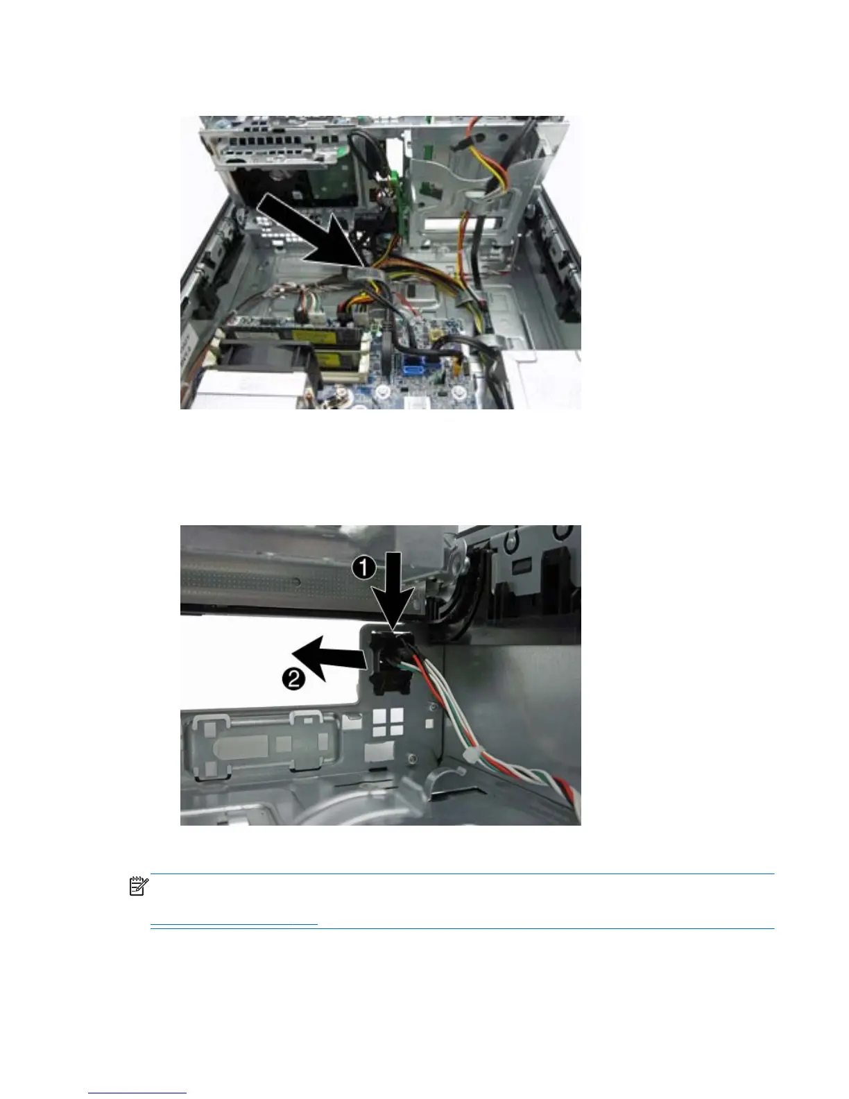 NOTE: Be sure to correctly route the cables beneath the drive cage when reinstalling the assembly.