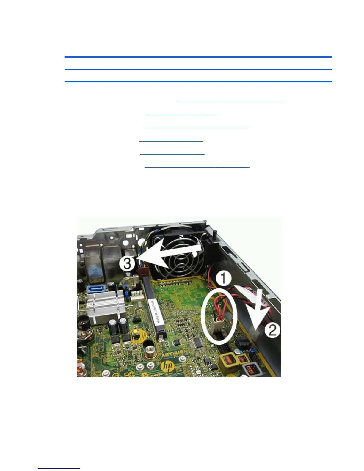 7. Unplug the hood sensor cable from the white system board connector labeled HSENSE (1) and