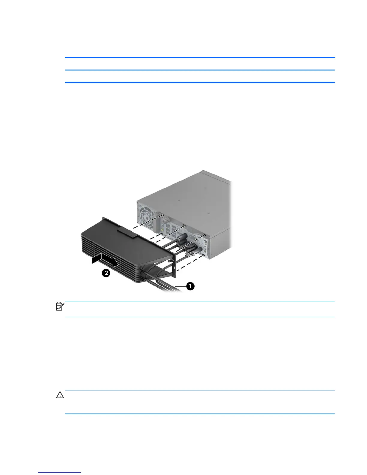 1. Thread the cables through the bottom hole on the port cover (1) and connect the cables to the rear