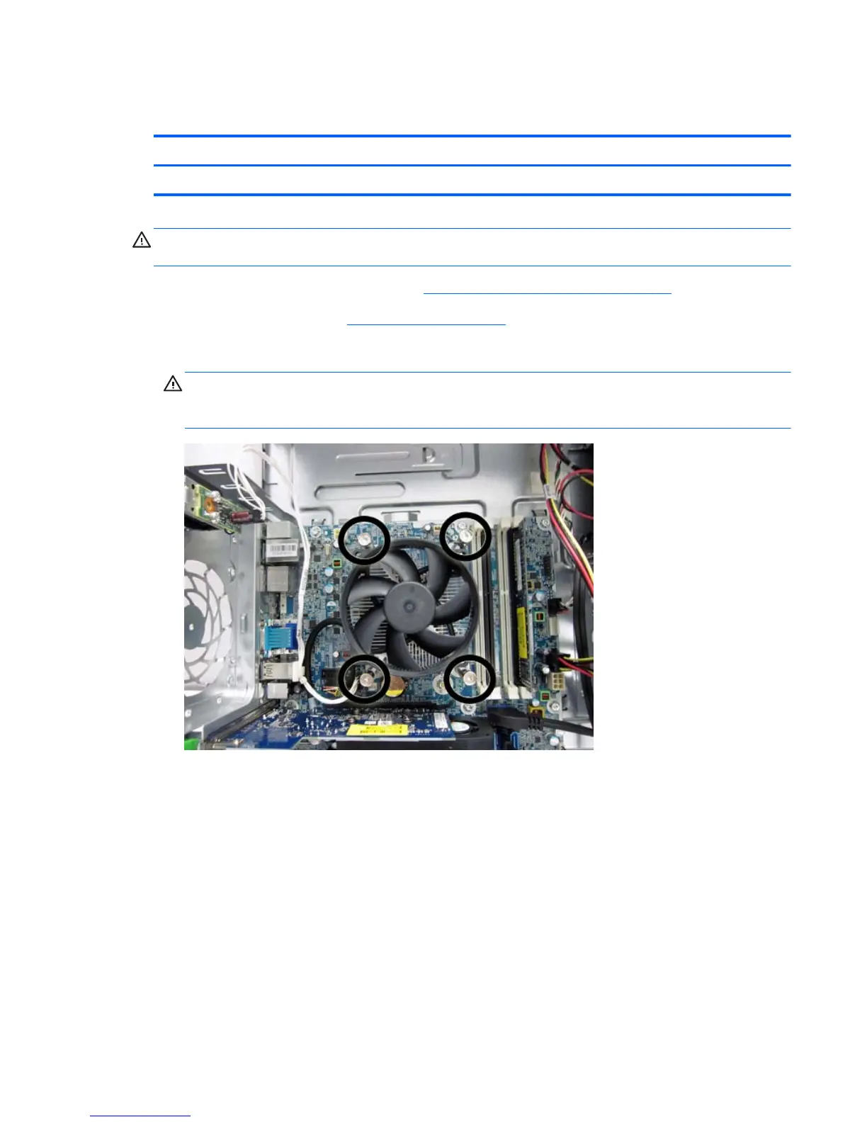CAUTION: Remove fan sink retaining screws in diagonally opposite pairs (as in an X) to even