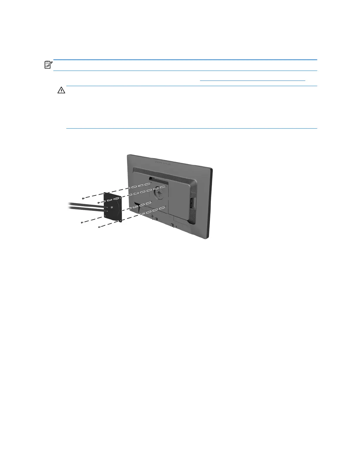 CAUTION: This monitor supports the VESA industry standard 100 mm mounting holes. To