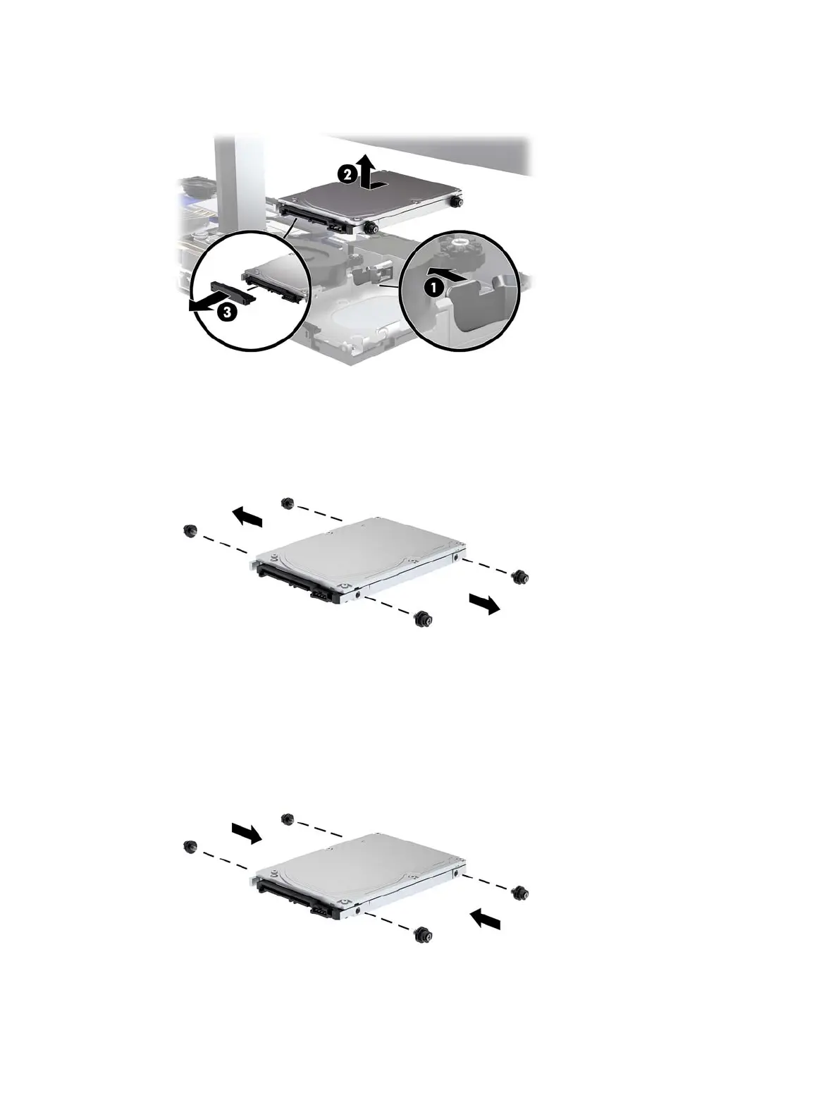 it out of the drive bay (2). And then disconnect the cable from the rear of the hard drive (3).