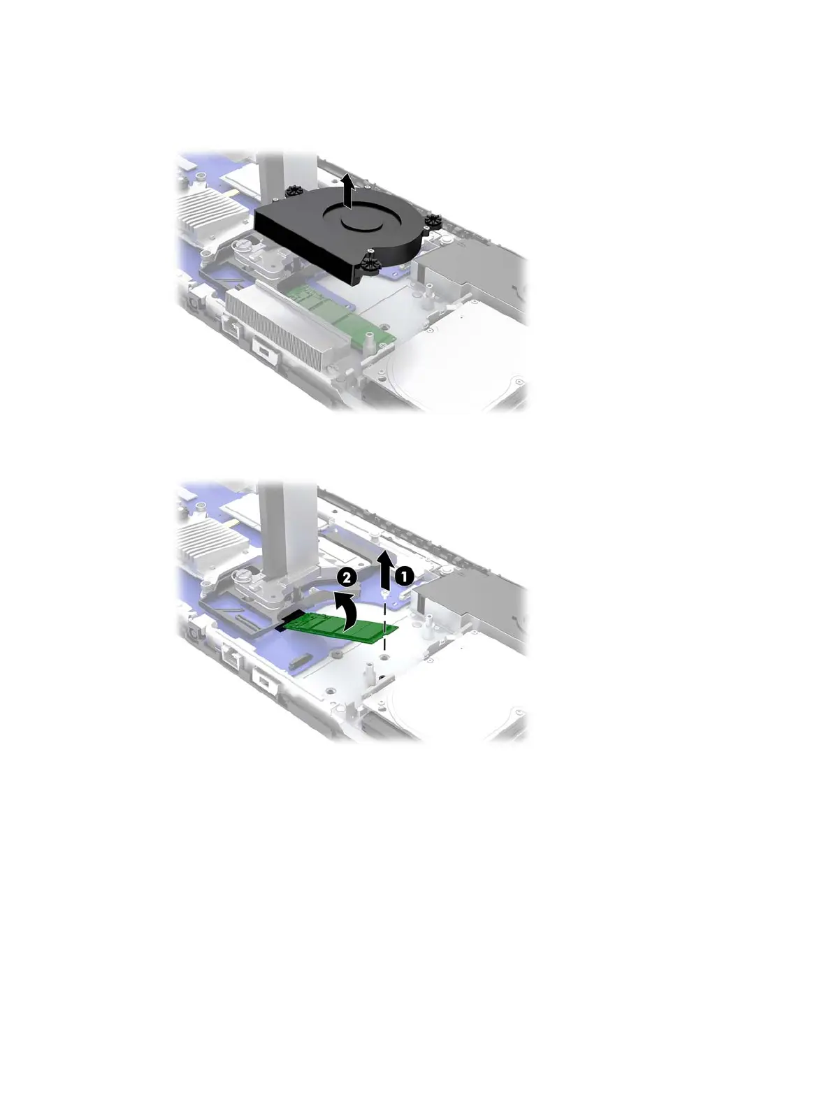 6. To remove an M.2 SSD, remove the screw that secures the SSD to the system board (1), and then slide