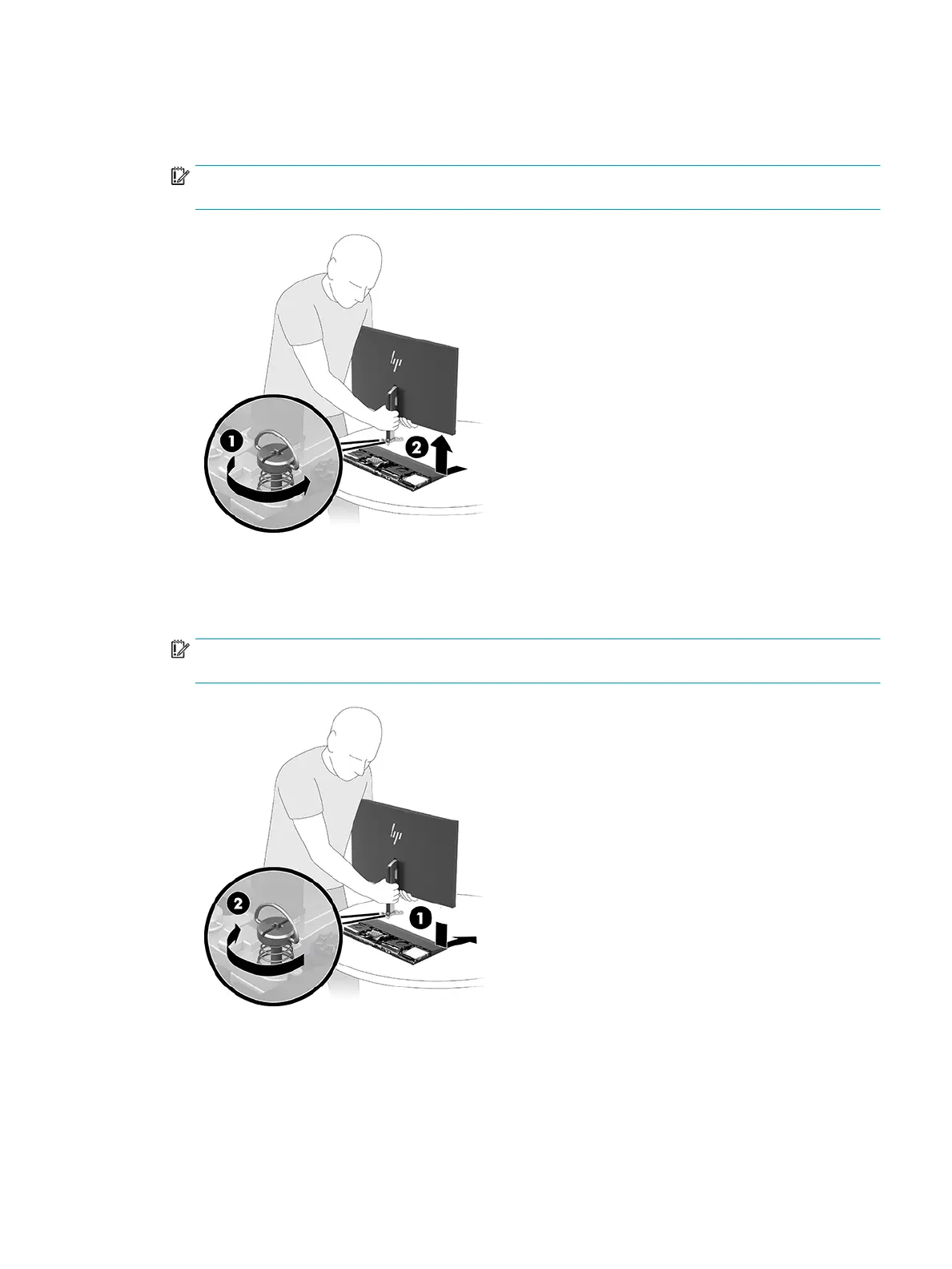clear it from the small metal retention tab, and then lift the monitor o the base (2).